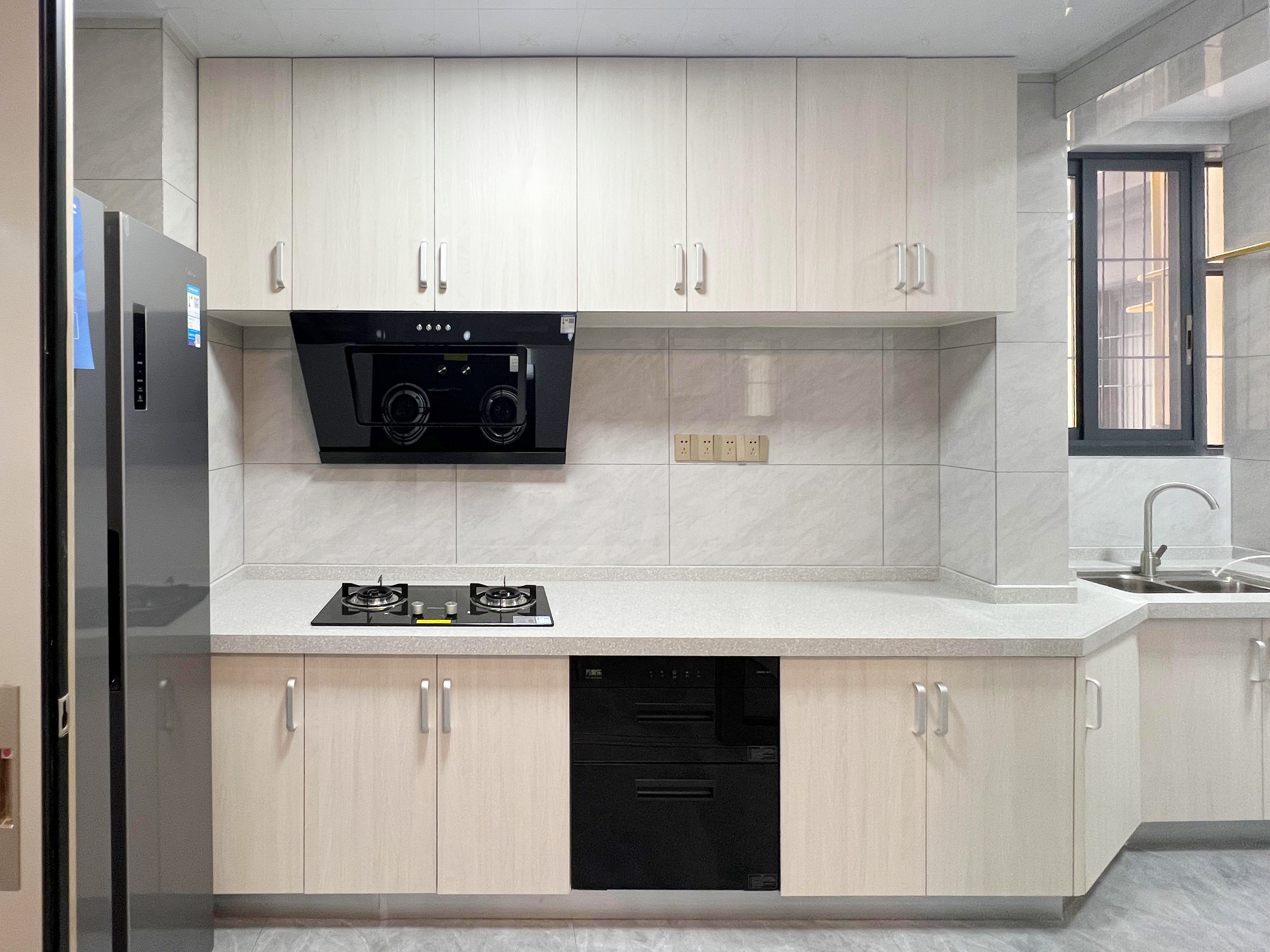 廚房做成了開(kāi)放式的,一來(lái)光線更好,二來(lái)也能增加空間上的延伸,讓整個(gè)廚房空間不至于顯得很小,在應(yīng)有的空間里生成更有效的空間實(shí)現(xiàn)設(shè)計(jì)的巧妙。