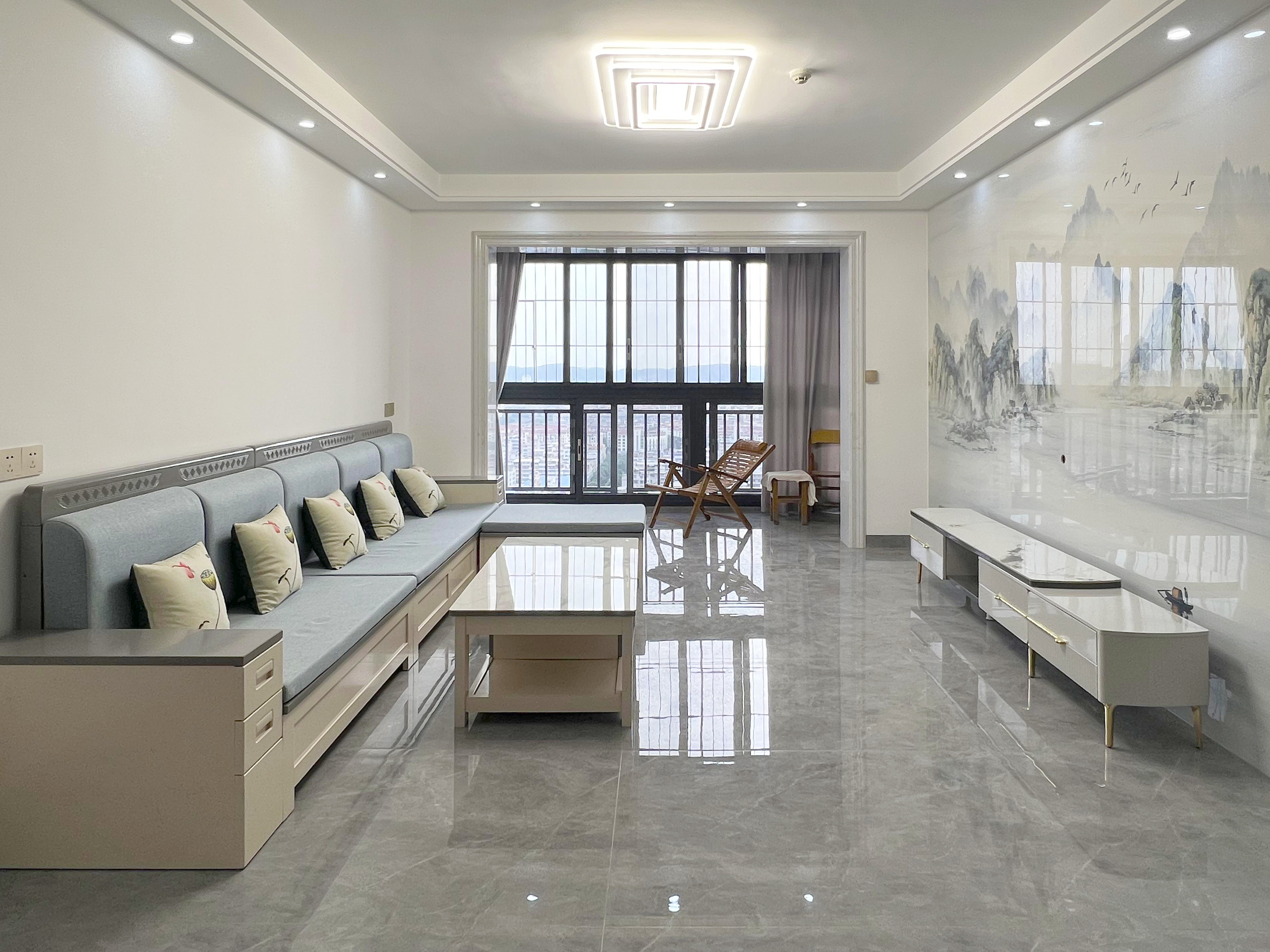 電視背景墻做了收納柜,一定程度上增加了客廳收納,讓原有空間憑空增加了可以容納雜物的地方,后期入住東西多了以后也可以有地方進(jìn)行很好的收納。淺色的柜門樣式很好的接納室外光線的亮度,讓整個(gè)客廳不會(huì)因?yàn)楣褡拥募尤攵兊没璋?,整體客廳在柜子的加持立體感滿滿,把電視嵌入以后就可以一家人愜意享受舒適生活了。