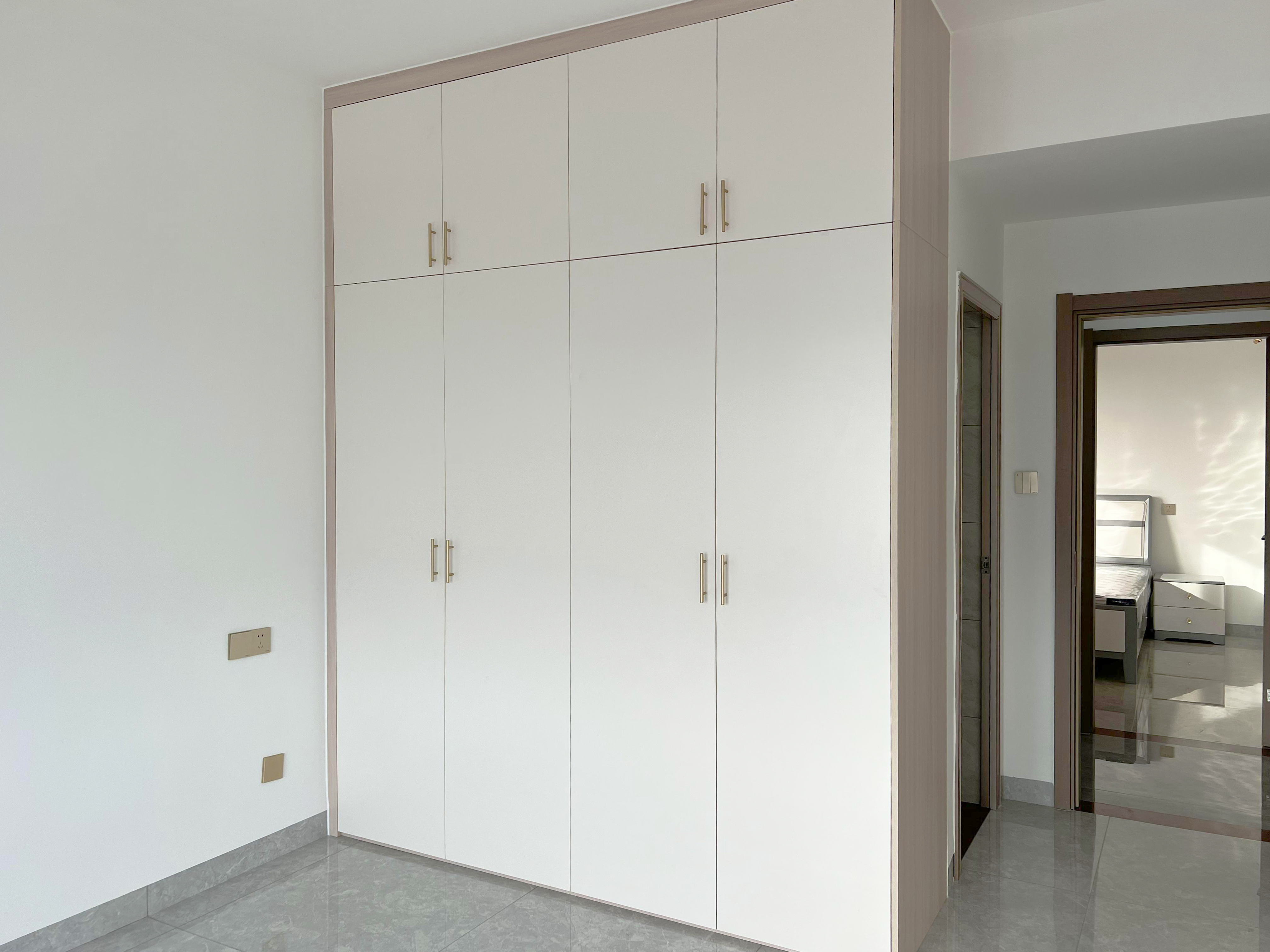 主臥為了更好的收納房間衣物等,注重了收納這部分的功能,在床尾位置直接做成了一排的到頂衣柜,保留走動(dòng)路線以后更好的利用到了床尾位置,其他地方簡(jiǎn)單化裝修,節(jié)省預(yù)算,也會(huì)有簡(jiǎn)約耐看感。