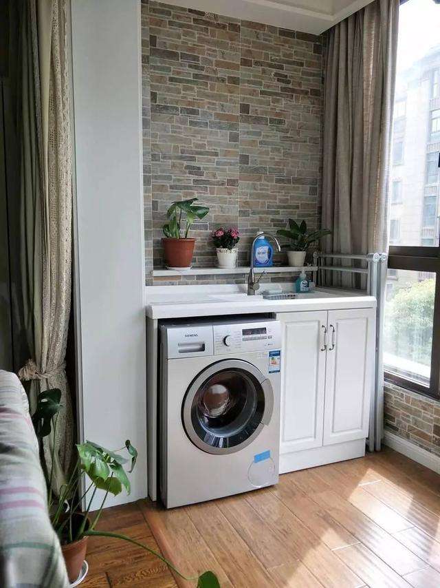 當(dāng)你決定把陽(yáng)臺(tái)裝修成晾衣區(qū)的時(shí)候,可以把洗衣機(jī)安裝在陽(yáng)臺(tái)上。一來(lái)是為了方便使用,洗好的衣物可以直接晾曬;二來(lái)可以釋放衛(wèi)生間的空間,讓衛(wèi)生間更為寬敞。