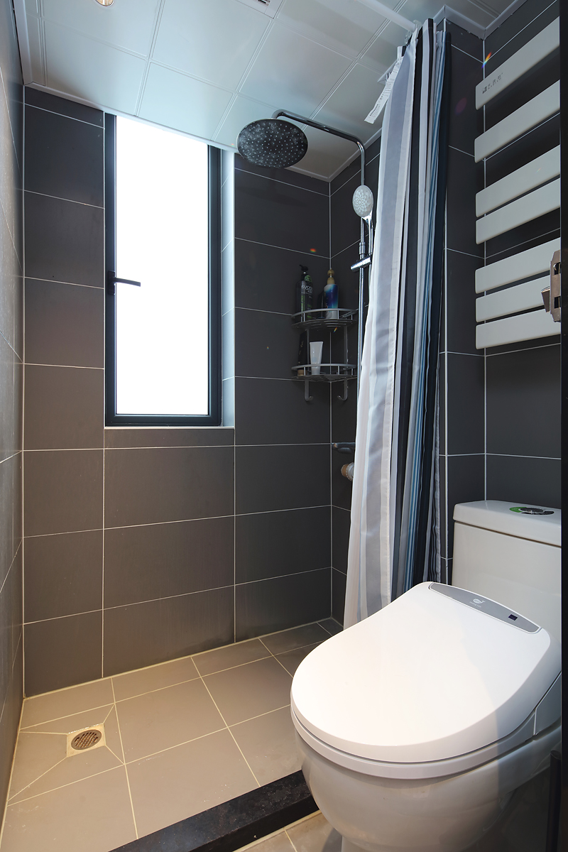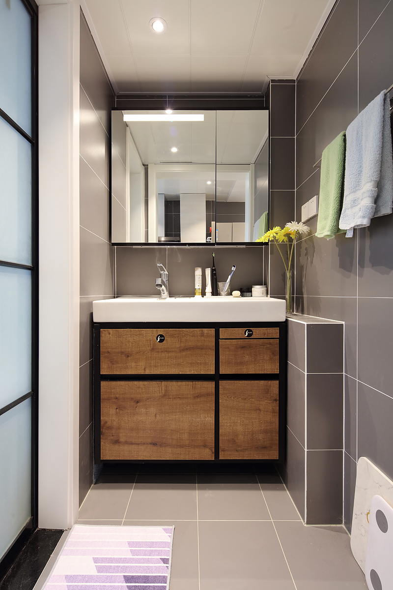 衛(wèi)生間被一分為二劃為兩個區(qū)域,盥洗區(qū)和衛(wèi)浴區(qū)。兩個區(qū)域有隔斷,使用的時候互不影響。