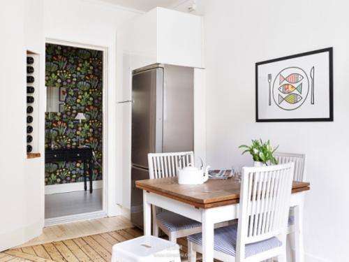 如果廚房的面積不足夠你擺放進(jìn)一部冰箱,那么把冰箱放在餐廳也是和不錯(cuò)的選擇。冰箱放在餐廳的優(yōu)點(diǎn),是可以避免冰箱遭受油污的侵?jǐn)_,能夠長(zhǎng)時(shí)間的保持干凈。缺點(diǎn)是有可能會(huì)妨礙到餐廳的動(dòng)線。