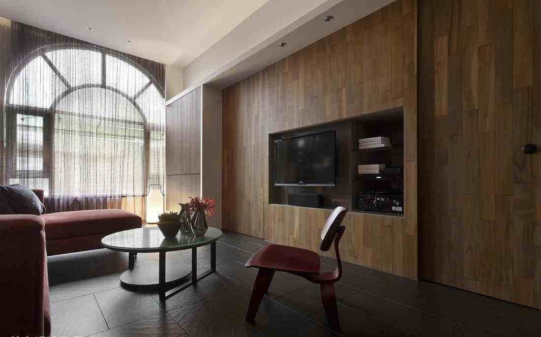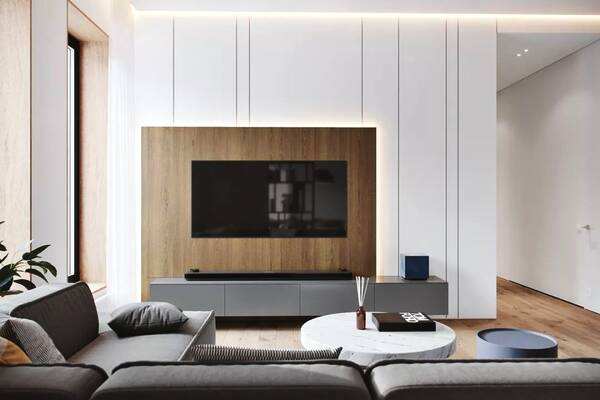 把背景墻放到墻面里,從側面看過去,電視背景墻就是一個平面,簡約大氣,美觀時尚。還可以利用射燈或者藏光設計幫忙打造層次感,效果十分出類拔萃。
