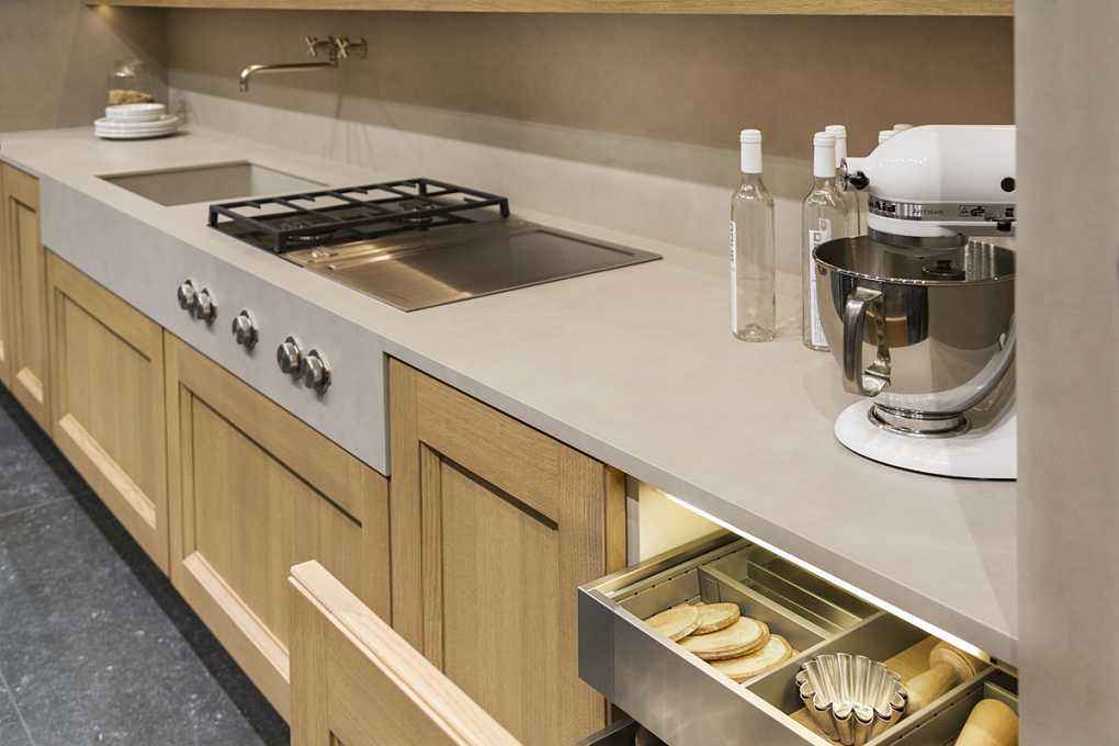 廚房臺(tái)面的高度,應(yīng)該根據(jù)家里最常使用廚房的家庭成員而定,通常來(lái)說(shuō),櫥柜操作臺(tái)的高度宜在89-92cm最佳。為了在使用廚房的時(shí)候不會(huì)被頂上的吊柜磕到頭,吊柜與操作臺(tái)之間的距離應(yīng)在55cm以上。