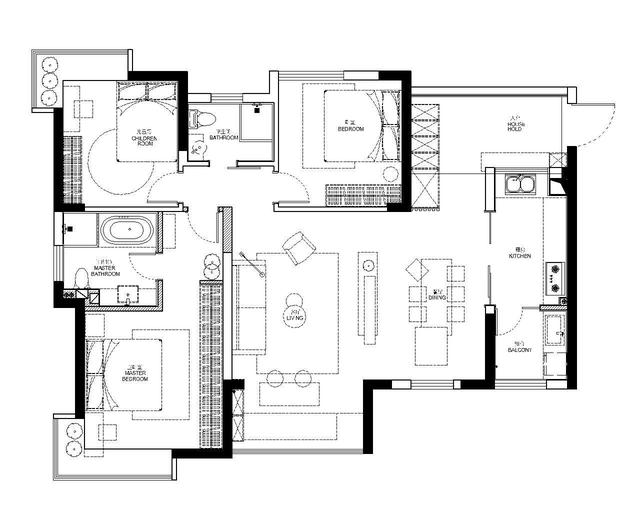 我們的設(shè)計(jì)師跟夫妻二人溝通了很久,最終把兩人的喜好進(jìn)行了最大的結(jié)合,混搭出了這樣一套日式、簡(jiǎn)約、北歐三居室。