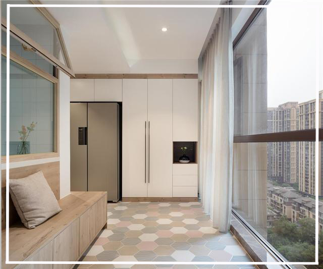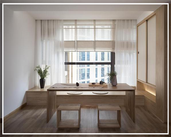 客廳陽臺(tái)品茶區(qū)的榻榻米和日式風(fēng)情推拉柜