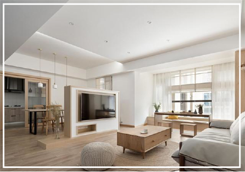原木色裝飾搭配時(shí)下流行的無主燈簡(jiǎn)約頂面