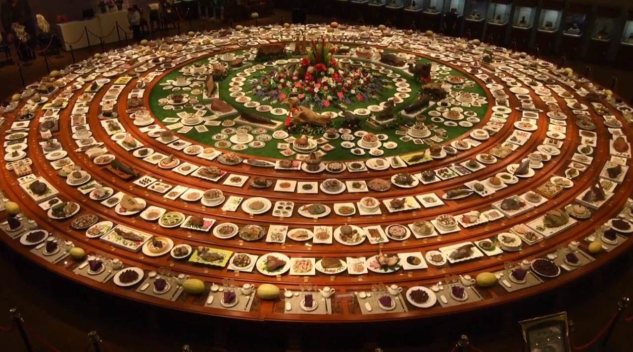所有餐具盤、碗、碟、筷子、刀叉、杯子等放在一起;