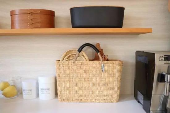 如果需要擺放的物品色彩豐富且多雜,例如精致小巧的咖啡杯和廚房用的毛巾圍裙,單獨(dú)擺放有難度,就可以選擇外表精美色彩統(tǒng)一的收納盒,例如竹編制品的收納盒,美觀統(tǒng)一又實(shí)用。