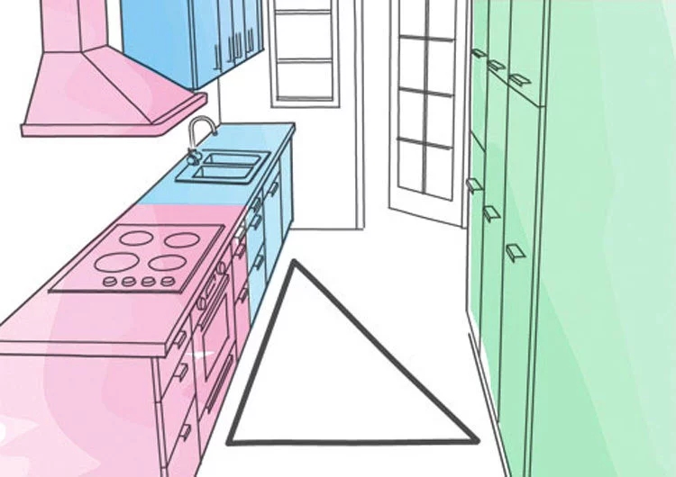 首先我們要了解廚房裝修的終極目標(biāo):不邁一步就能做好飯,所有的東西都放在觸手可及的地方,將廚房的灶臺、水槽、儲物區(qū)三點(diǎn)構(gòu)成一個(gè)三角形,每個(gè)點(diǎn)之間的理想距離為90公分。