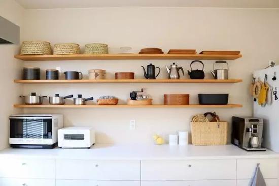 展示收納術(shù)說到廚房收納,很多人第一想法是把所有東西都收起來,讓廚房看起來空空蕩蕩,其實(shí)不然,廚房的收納也可以將物品擺出來,這種收納方法是展示收納法,簡單來說就是“我的廚具這么好看,當(dāng)然是要擺出來給別人看的”收納術(shù)。