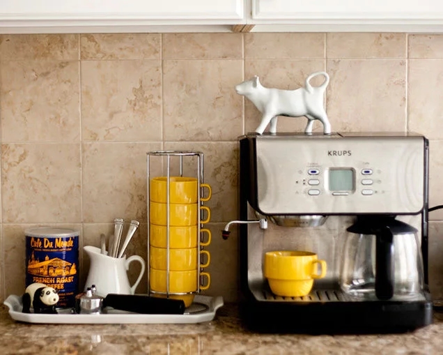 相互聯(lián)系的物品也要就近收納在一起,例如水壺和咖啡機(jī)放在展示區(qū)的臺面上,一抬手或者一彎腰就可以拿到咖啡杯和勺子;飯勺和筷子碗放在一起,這樣子拿餐具的同時(shí)就會(huì)一起拿飯勺去盛飯。