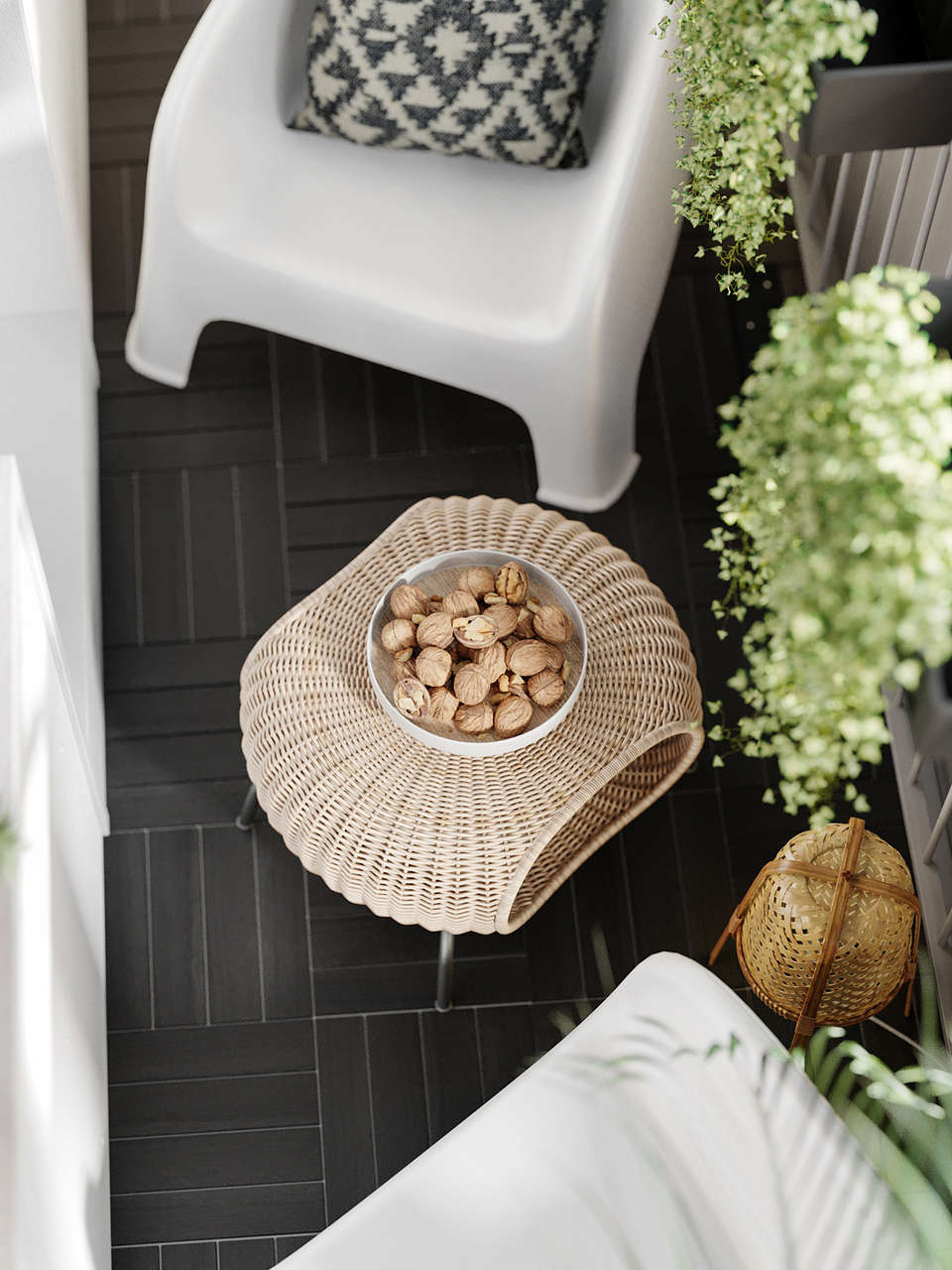 在這里養(yǎng)上幾盆綠植,在內置柵欄上安置幾盆吊藤,就是一個小小的秘密花園,再在其中放上兩個白色的凳子和竹編的小圓桌,滿滿的北歐ins風。