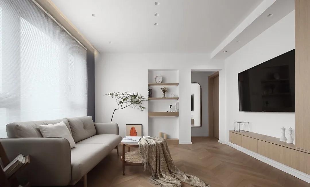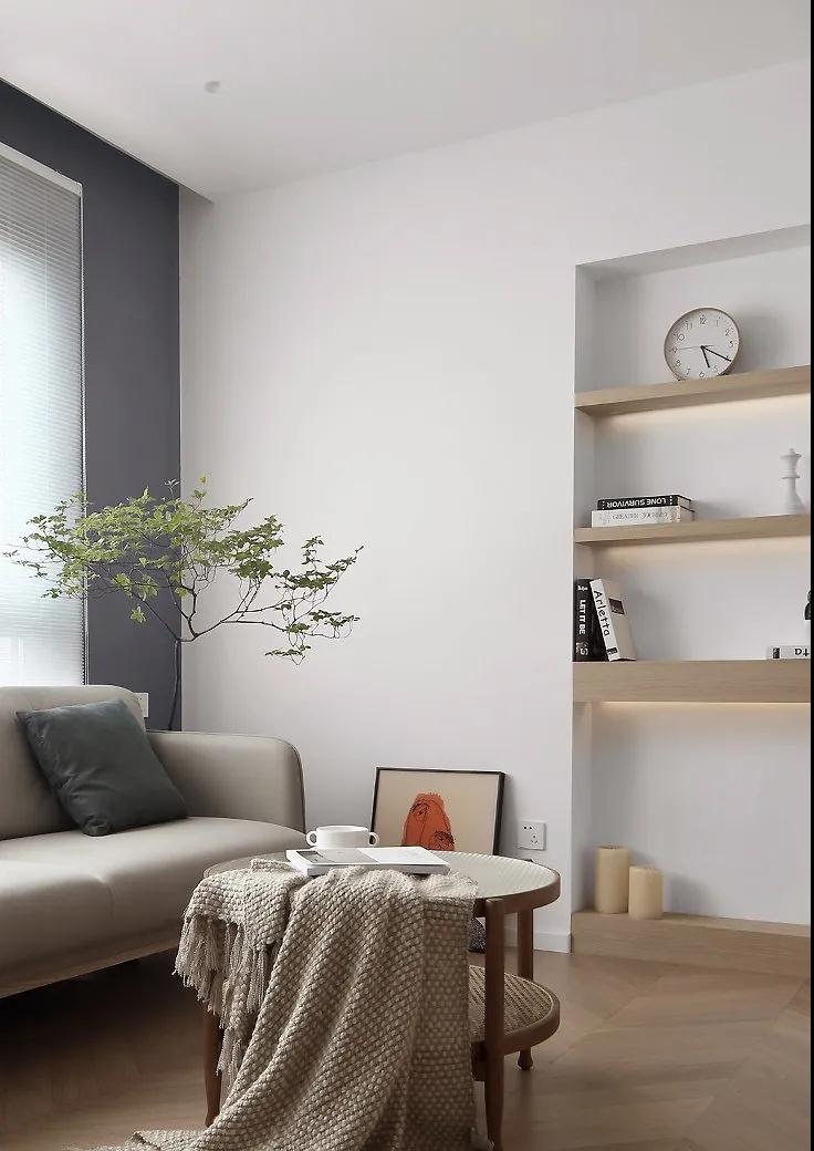 原木是日式風(fēng)格的重要元素,柔白色與原木色在空間中交互融合,在給人一種置身自然的舒適感,魚(yú)骨拼的木質(zhì)地板烘托出空間的質(zhì)感又保留了溫馨的質(zhì)感。