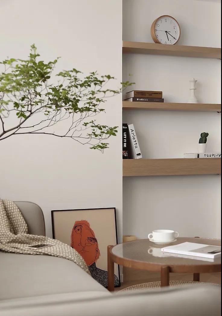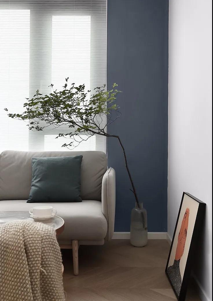 客廳的一角擺放上一枝綠植給自然的空間添加了一份綠色清新感,旁邊放上一幅橘色調(diào)的畫(huà),以暖色增添空間的溫馨感。