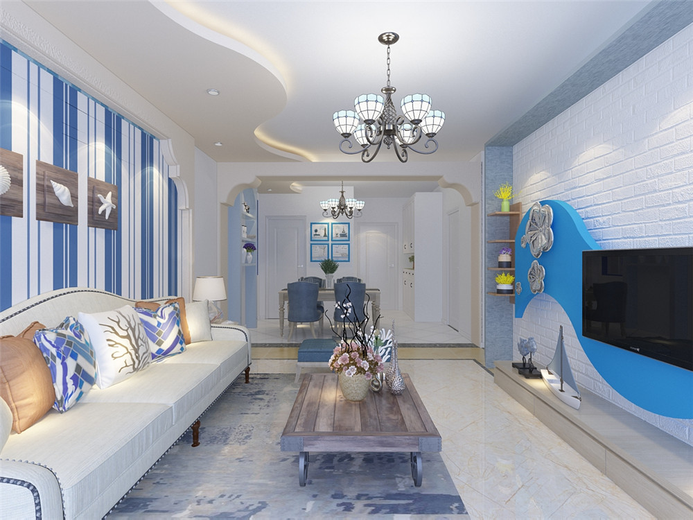 這一套地中海風格的案例,有一種在希臘海邊小鎮(zhèn)度假的感覺。以藍白色為主,融入了海浪的元素,自由浪漫,很有格調(diào)。