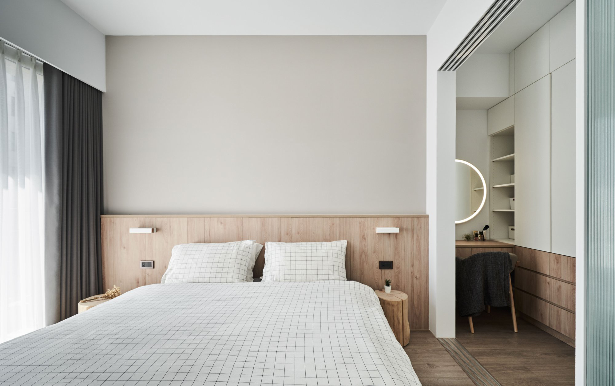 106㎡ | 以無彩的沉穩(wěn)、木質(zhì)的溫潤搭配玻璃紋理與光線交織