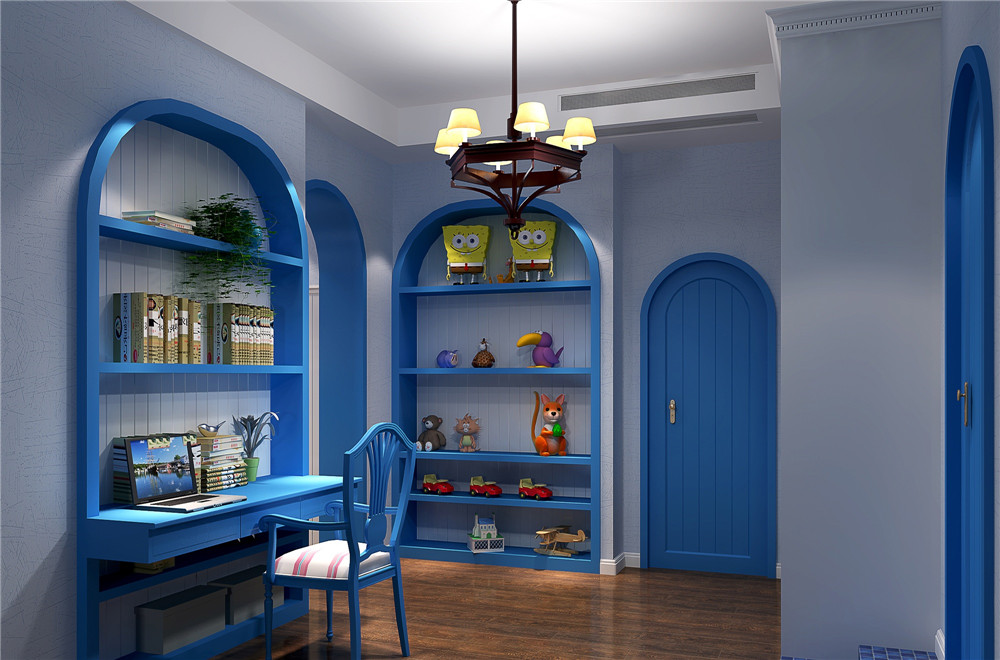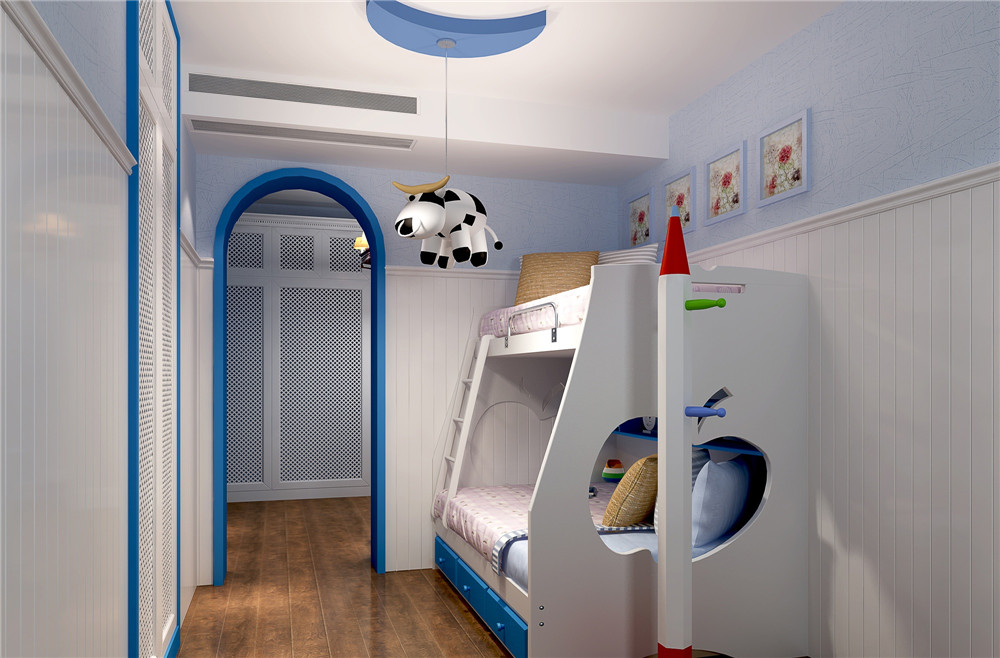 因為業(yè)主家里有小孩,所以房屋的多處地方都充滿了童心。藍白的主色調,剛好符合了地中海風格的特性,也是小男孩都普遍能接受的顏色。