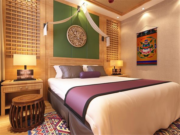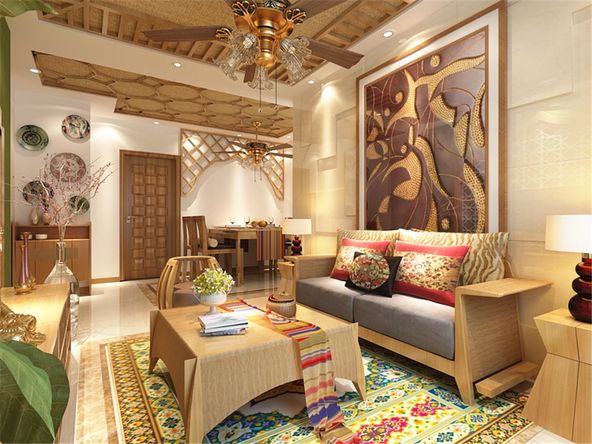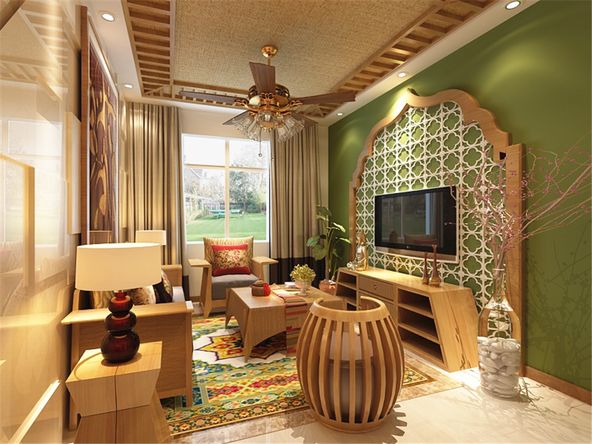 這一套風(fēng)格同時(shí)融合了東南亞風(fēng)格和美式風(fēng)格的特色,用深色去營造華貴,用綠植來點(diǎn)綴空間。