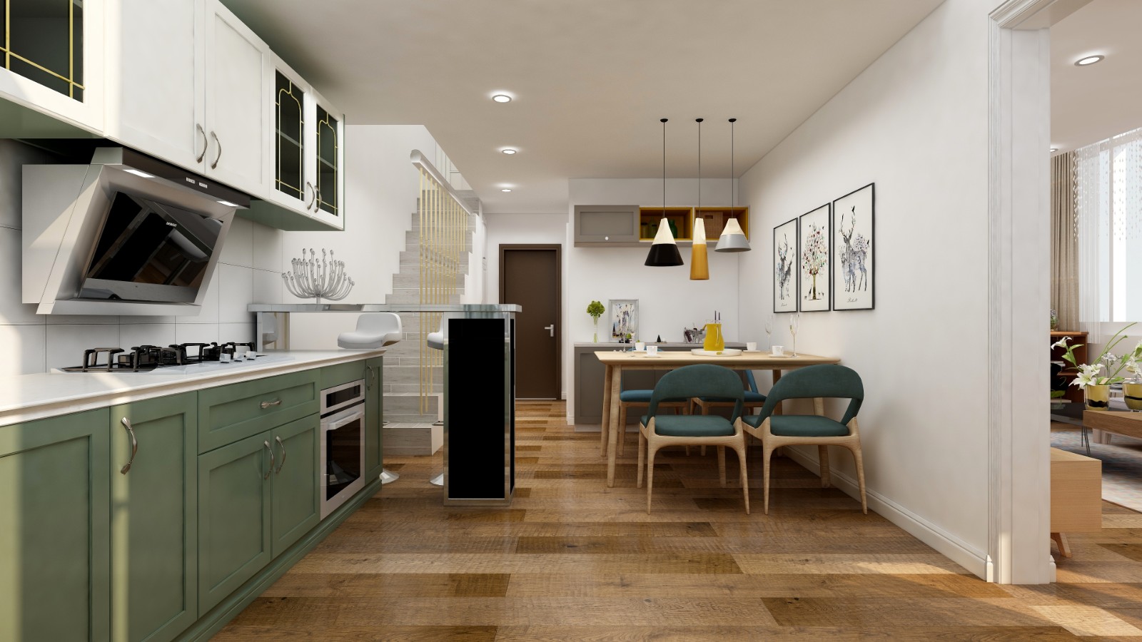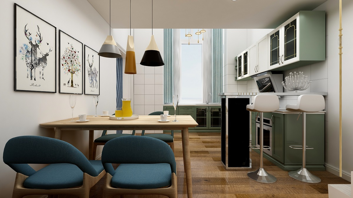清新時(shí)尚的綠色和木地板一搭配,就能營(yíng)造出一種北歐風(fēng)特有的簡(jiǎn)約、自然的家居氛圍,設(shè)計(jì)上也十分人性化,注重空間的功能性。