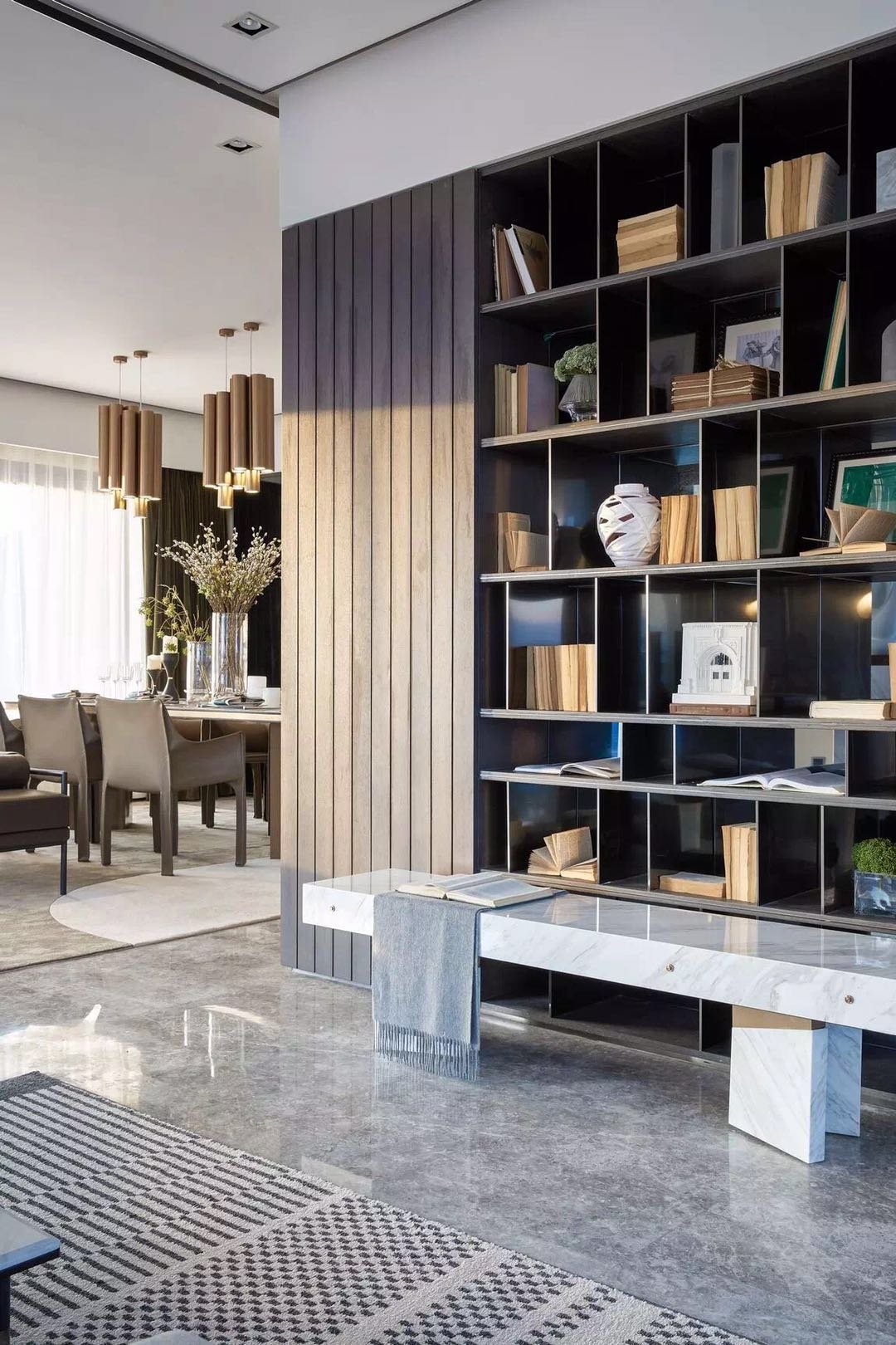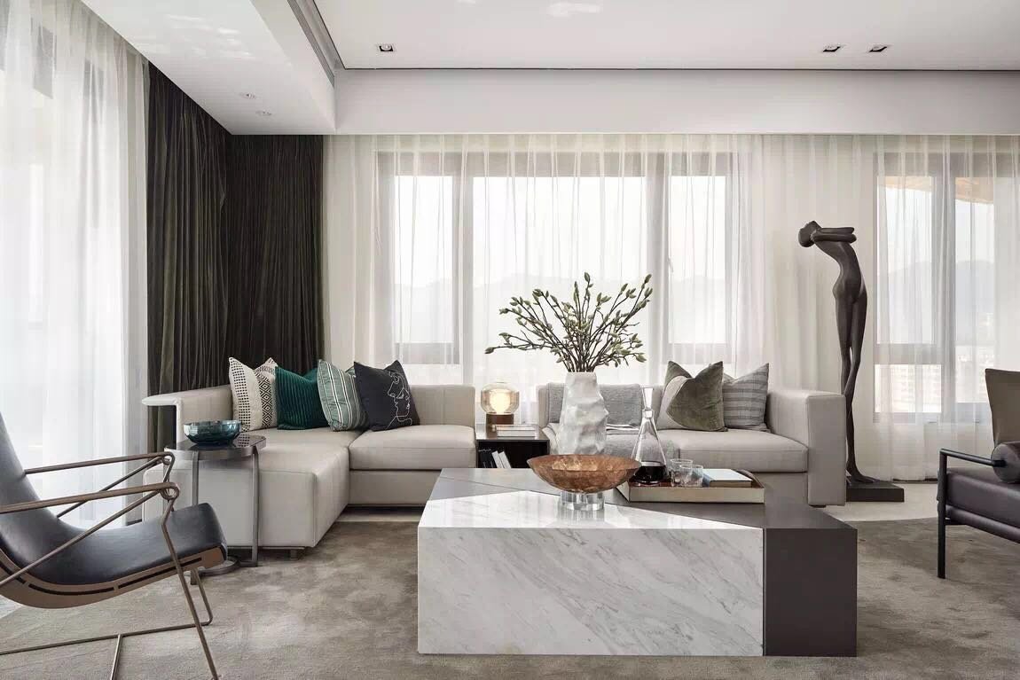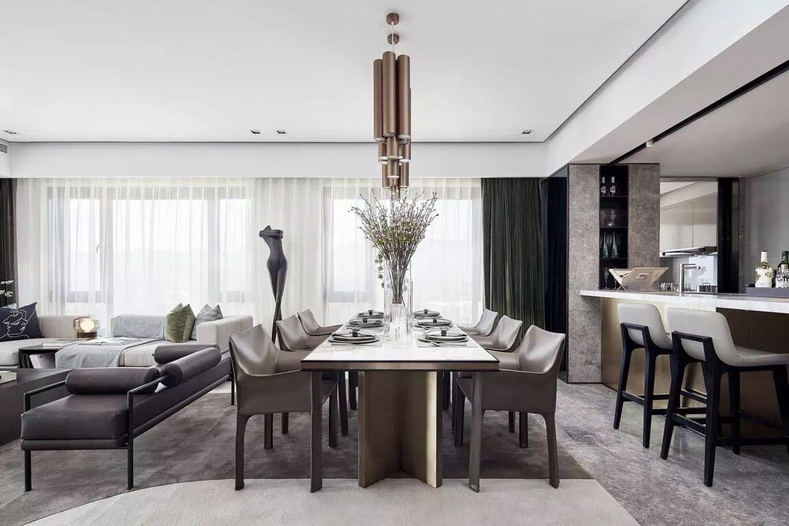 這套新中式的三居室,并沒有刻意營(yíng)造中式的氛圍。而是通過線條與色彩的變化,營(yíng)造了一種中式的禪意。