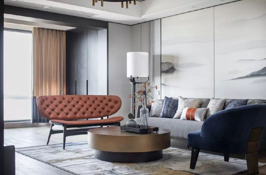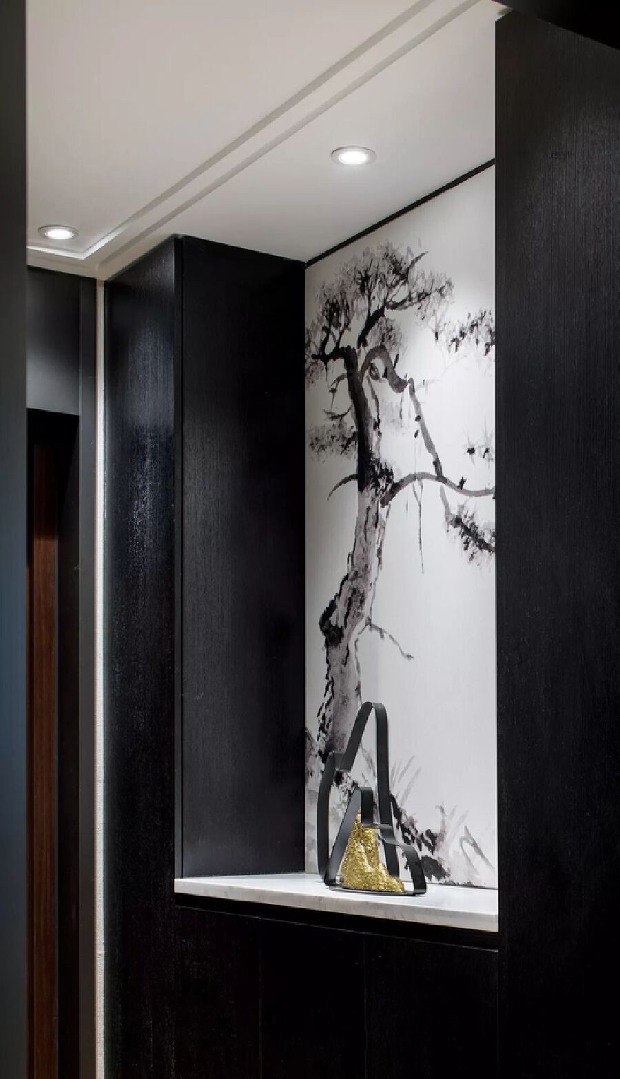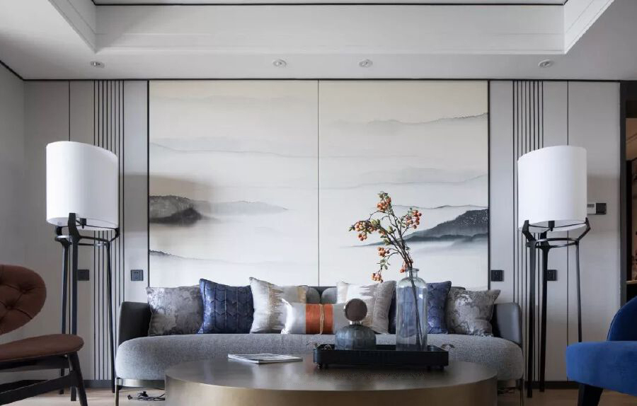 水墨元素被廣泛運(yùn)用在客廳的裝飾上面,有一種中式的禪意。