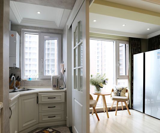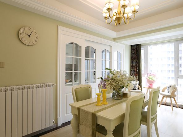 歐式風(fēng)格的典雅和北歐風(fēng)的清新融合在一起,相得益彰,配色也是相當(dāng)舒適,視覺(jué)上很是和諧。