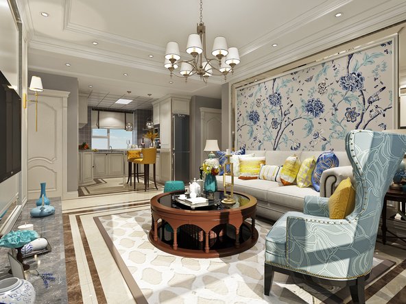 南寧大唐世茂天悅104平米歐式風格案例效果圖
