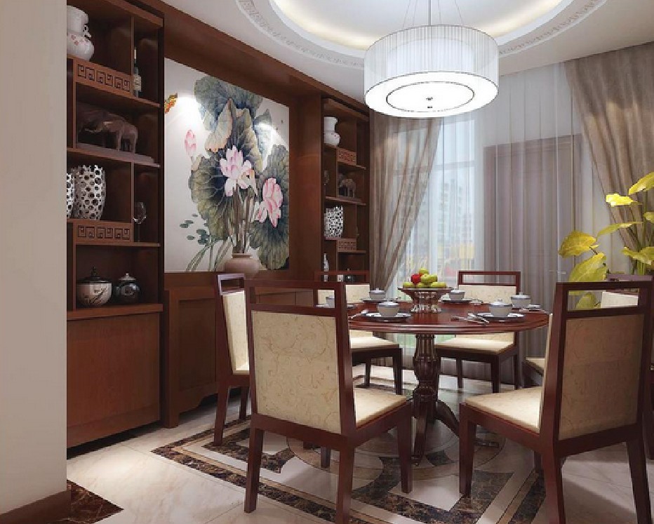 中式的家具大氣、做工精美,很有質(zhì)感。因?yàn)闃I(yè)主家人比較多,所以選用了一張圓桌,既貼合整體的家居風(fēng)格,也十分地實(shí)用。