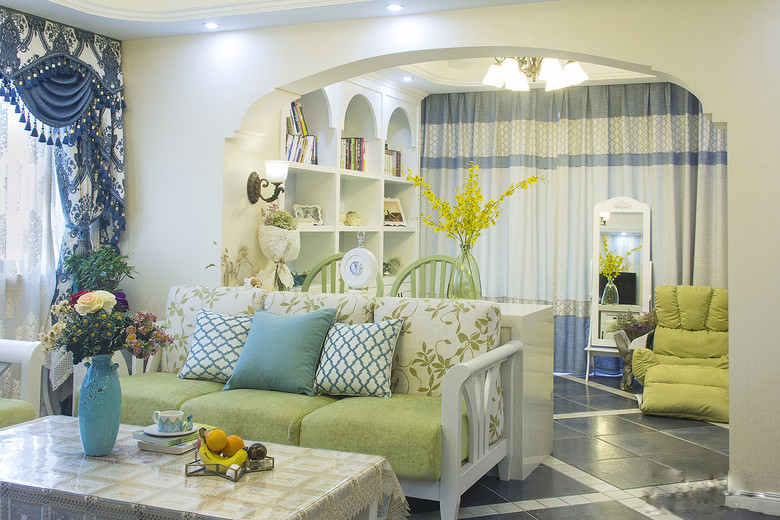 這一套案例沒有像尋常的地中海風(fēng)格案例一樣,使用大面積的藍色進行裝飾,而是用了淺藍色做點綴,既體現(xiàn)了地中海的特色,又不會太過張揚。