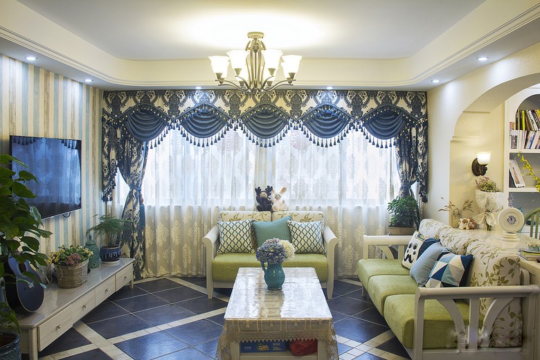 南寧大唐·天城97平米地中海風(fēng)格案例效果圖