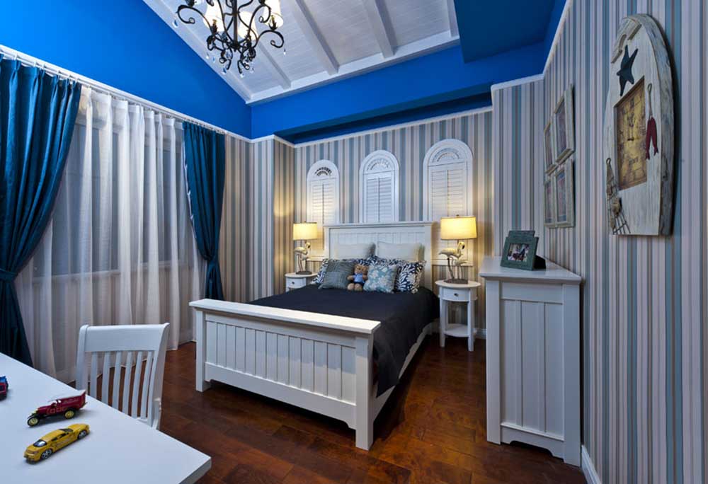 這是一套美式田園鄉(xiāng)村風格的三居室,色彩搭配比較大膽,但是整體上很是和諧,有一種牧場小屋的感覺。