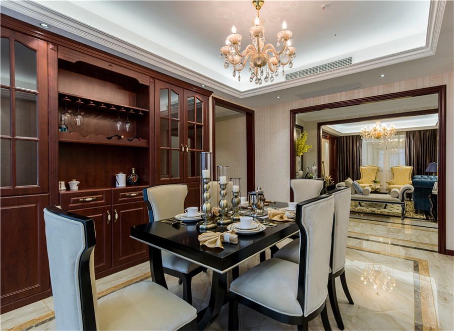 南寧綠地城130平米三居室新古典風格案例效果圖