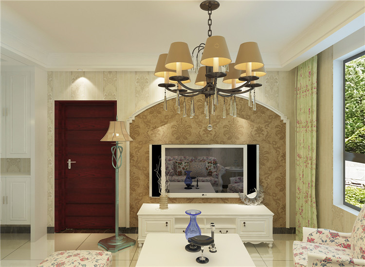 碎花在田園風(fēng)里是必不可少的元素,設(shè)計(jì)師在電視背景墻上增添了弧線設(shè)計(jì),雖然只是個簡單的小設(shè)計(jì),但是卻能增添客廳的層次感。