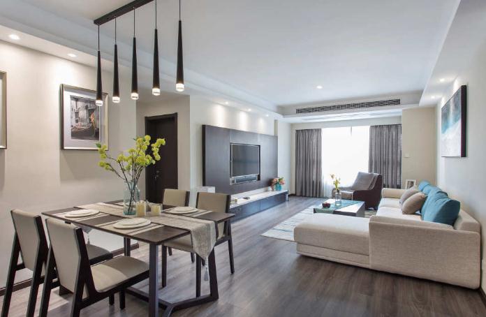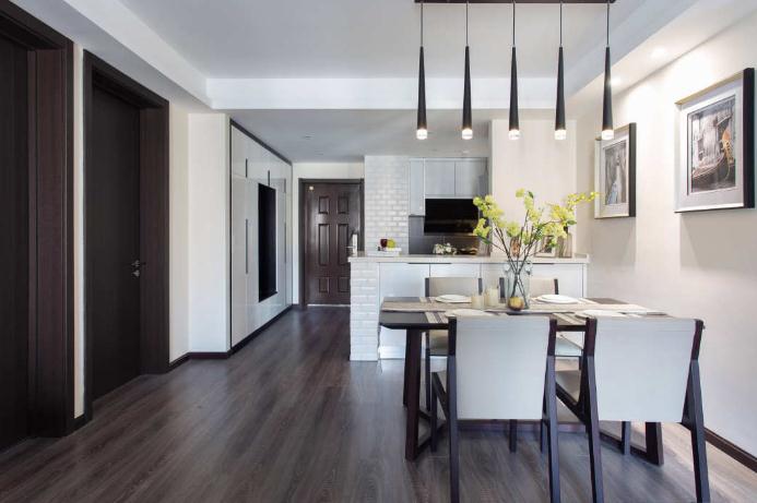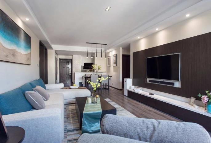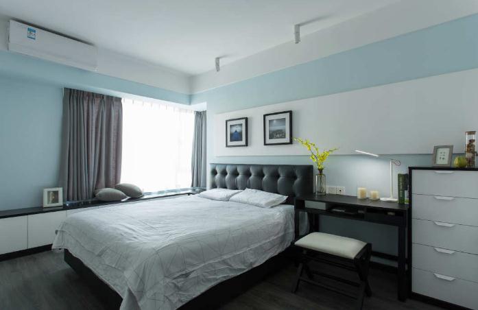 現(xiàn)代簡約風雖然看上去簡單,但是卻不缺乏設計感??蛷d和餐廳的風格有連貫性,臥室以天藍色作為裝點,時尚感與溫馨感兼具。