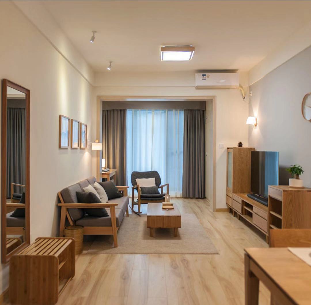 整個(gè)房屋都是很濃重的原木氣息,清新又自然。純色和原木的搭配,時(shí)尚美觀,又有一種日式和風(fēng)的典雅。