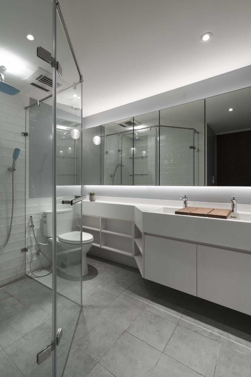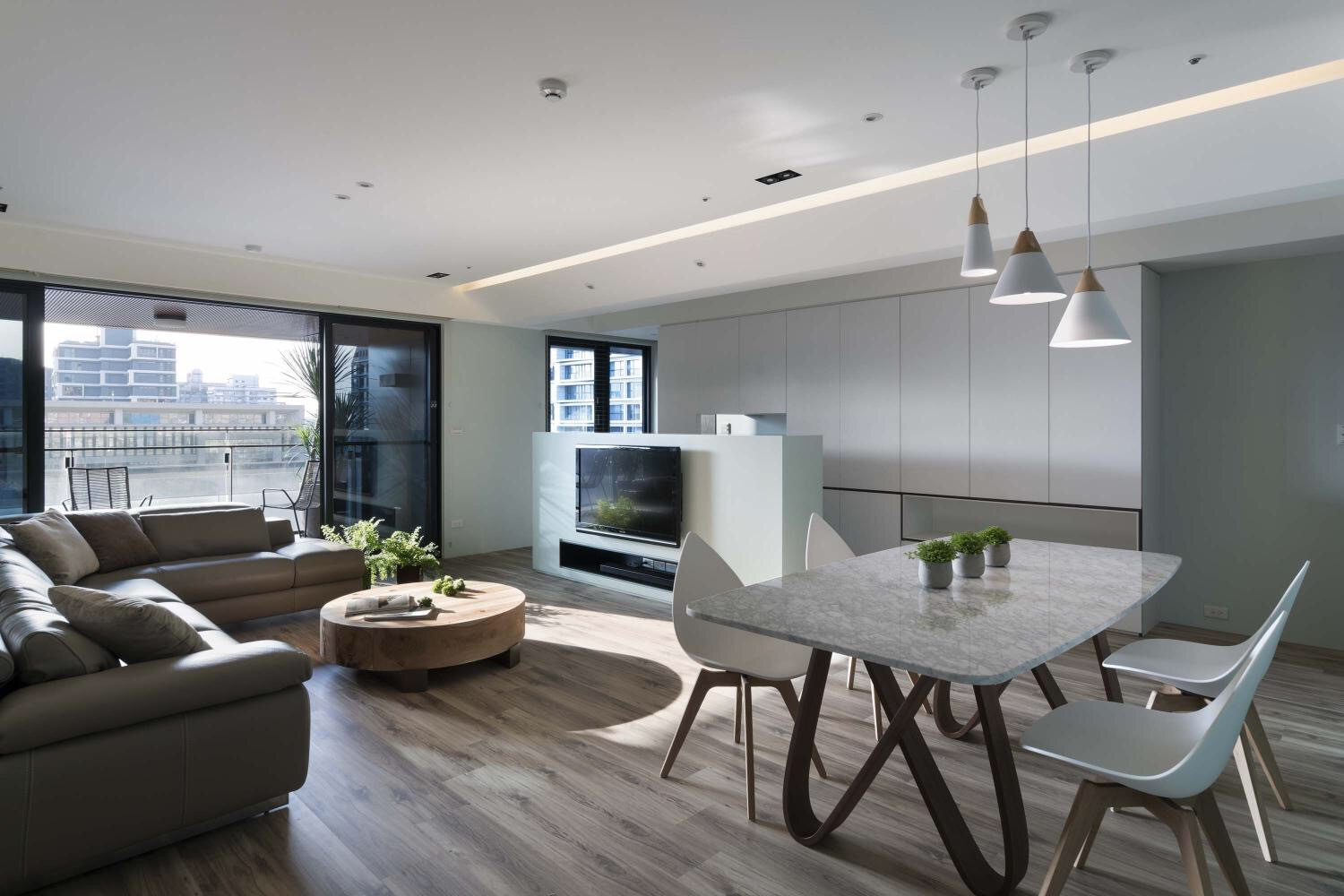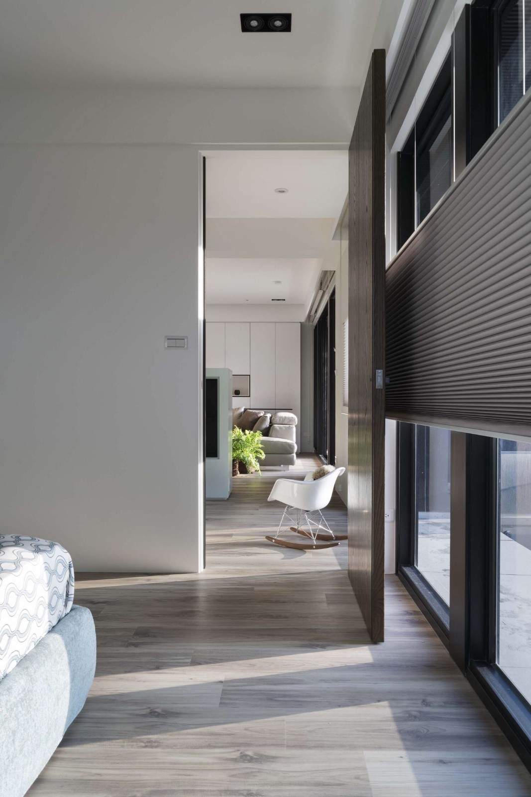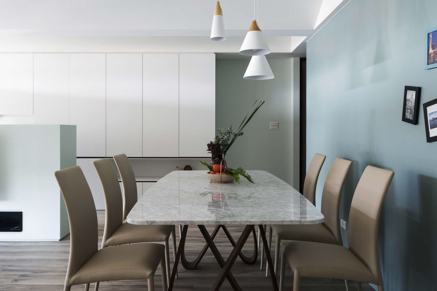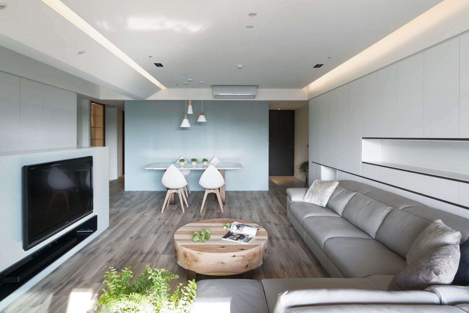 這套房子以黑白灰為主色調(diào),但是某幾處墻面用了帶點灰調(diào)的淺藍色作為裝點,簡單的同時也不缺乏設(shè)計感。房屋里的柜子幾乎都是定制的,它們滿滿當(dāng)當(dāng)?shù)卣紦?jù)了一整面墻,跟整體風(fēng)格的適配性相當(dāng)?shù)貜?,也不會占用過多的面積,真正做到了美觀又實用。