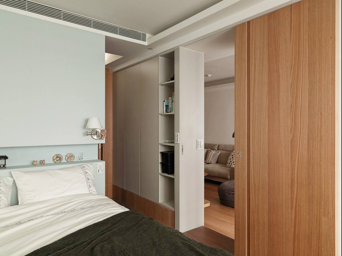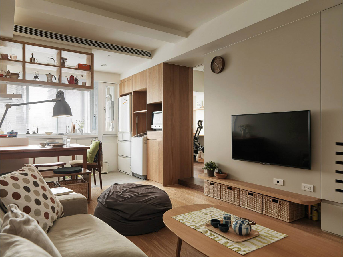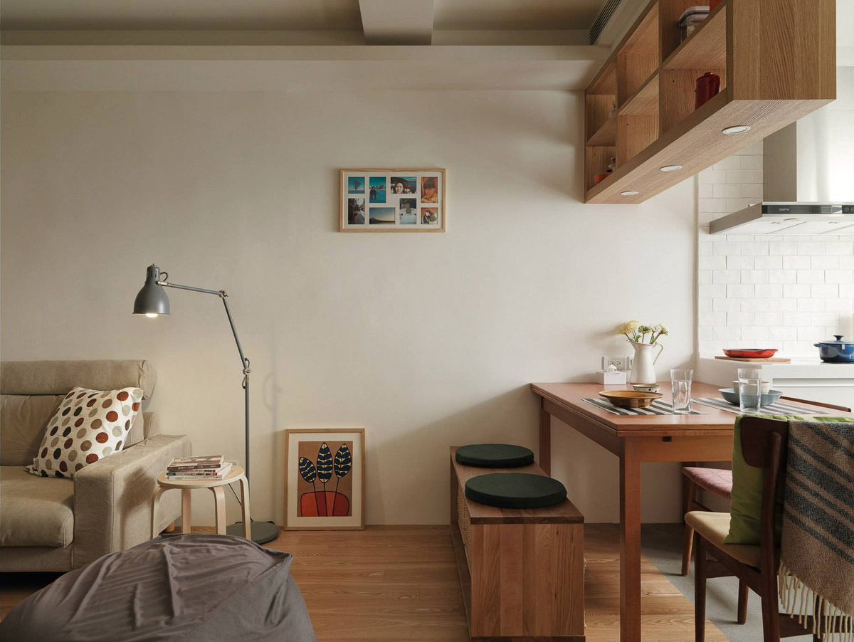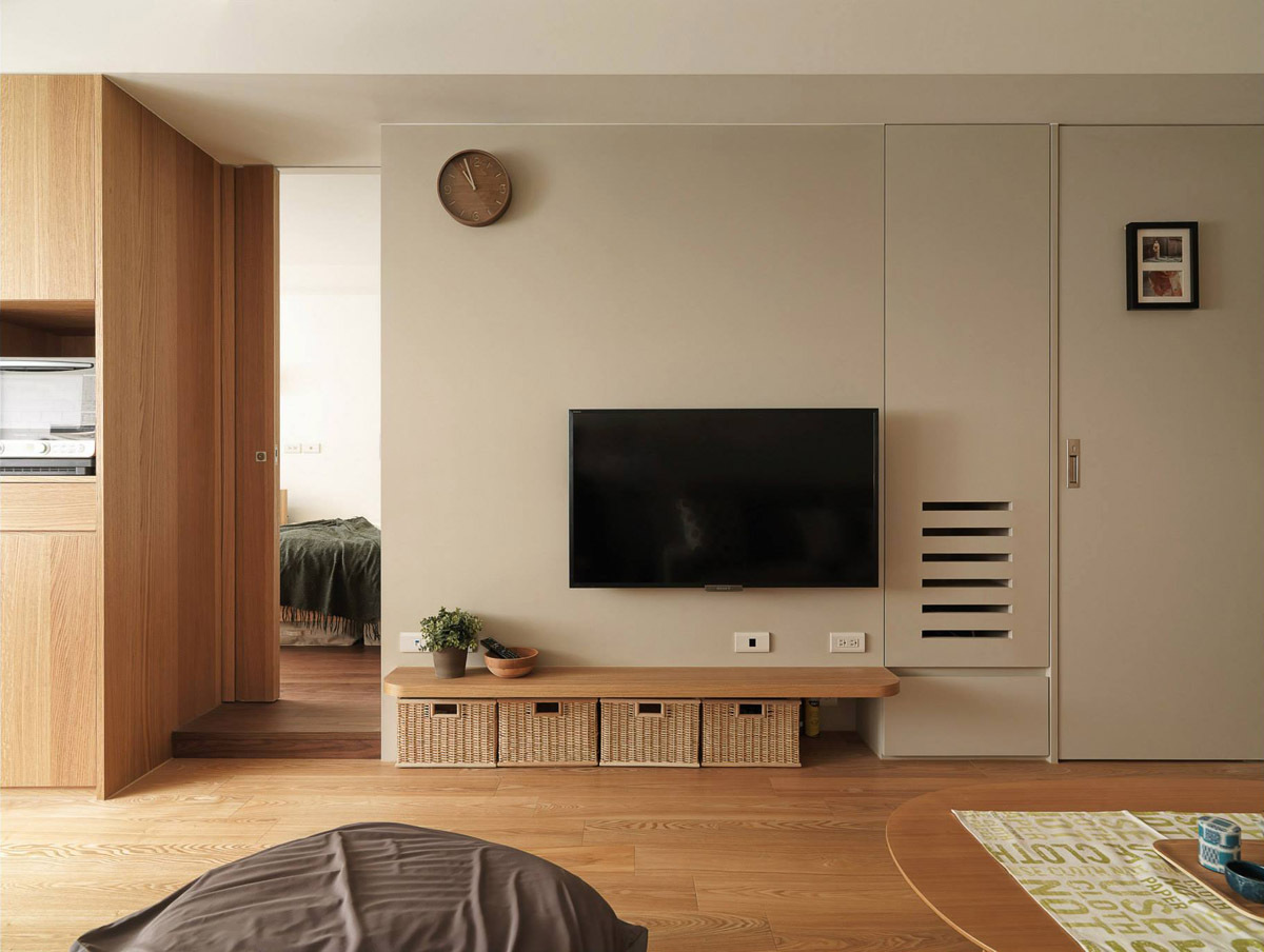 明明只是43平米的一居室,卻被設(shè)計(jì)師做出了大戶(hù)型的感覺(jué),白色的墻面雖然簡(jiǎn)單,卻有提亮空間、開(kāi)闊視野的效果。原木質(zhì)地的家具打造出了日式風(fēng)格的優(yōu)雅與靜謐。把洗衣機(jī)、冰箱等大型家居內(nèi)嵌裝進(jìn)柜子里,可以讓整個(gè)空間看起來(lái)更簡(jiǎn)潔也更美觀。
