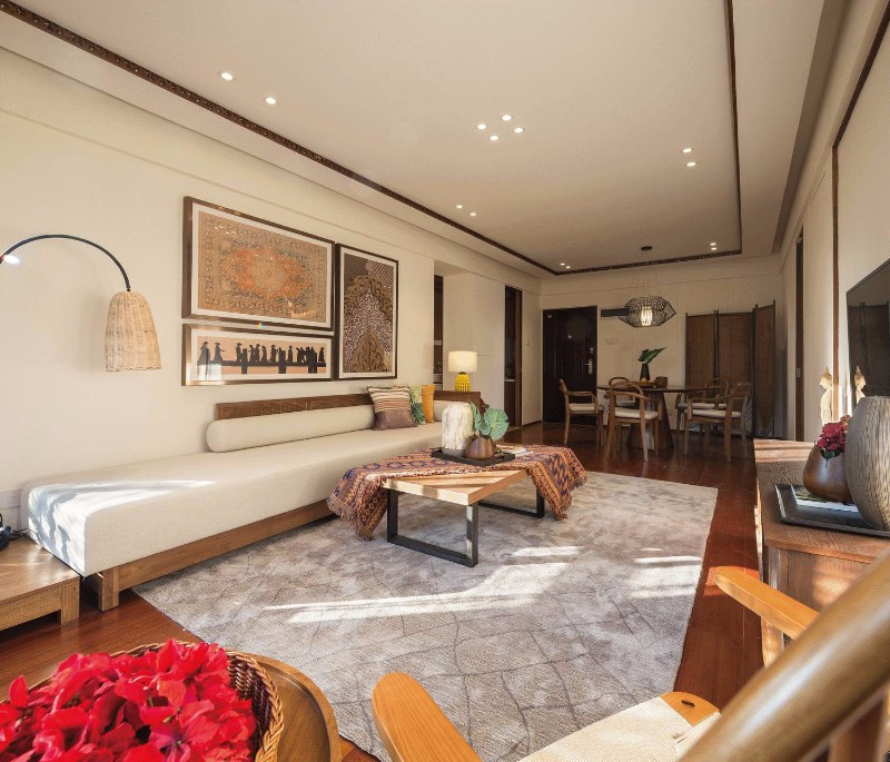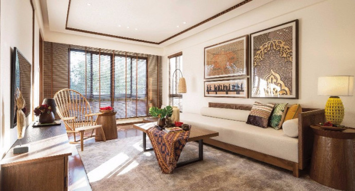 東南亞風(fēng)格常用竹、藤等天然的材料做裝飾,局部用有質(zhì)感的布料做搭配,再加上燈光的變化,打造出一種穩(wěn)重、豪華的感覺(jué)。這一套東南亞風(fēng)格沒(méi)有用太多花哨的裝飾,所以能夠給人帶來(lái)一種清新自然的感覺(jué),風(fēng)格濃烈的同時(shí)卻不顯得雜亂,這也正是東南亞風(fēng)格能流行起來(lái)的原因之一。