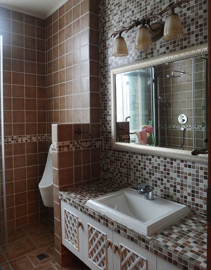 碎花是田園風(fēng)格里最常見的元素之一,小清新的裝飾復(fù)古又俏皮,只要選對(duì)了花樣,就算用碎花裝飾一整面墻,就不會(huì)覺得花哨。衛(wèi)生間用馬賽克瓷磚鋪設(shè)盥洗臺(tái),馬賽克瓷磚裝飾效果好,防水效果也強(qiáng),廚房、衛(wèi)生間等地方經(jīng)常能看到它們的身影。