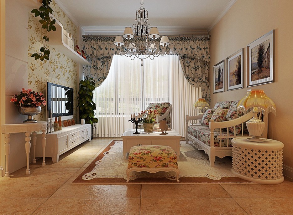 南寧富鳴陽光城108平米田園風(fēng)格案例效果圖