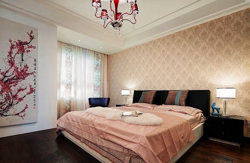 這套中式風(fēng)格為了迎合業(yè)主的喜好,用了許多中式的家具去裝修,深色的中式家具成熟穩(wěn)重,低調(diào)不張揚(yáng)??蛷d和玄關(guān)處用鏤空的中式屏風(fēng)隔開,格調(diào)高雅又富有新意。但是女兒房的設(shè)計沒有必要那么沉悶,所以設(shè)計師在裝飾女兒房的時候還是以粉白色為主,活潑夢幻又清新舒適。