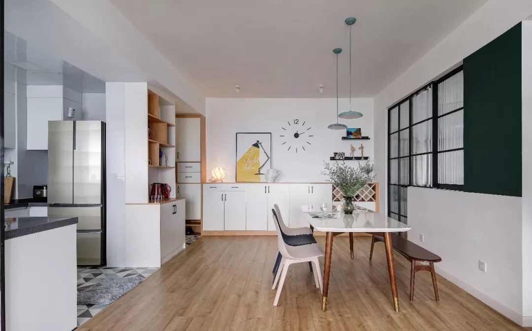 來(lái)裝修的業(yè)主是一位年輕的姑娘,她說(shuō)她和她老公剛領(lǐng)證,這是他們倆人的婚房,所以希望設(shè)計(jì)上不要太沉悶,盡量輕快一些。這套北歐風(fēng)的二居室所使用的裝飾都很簡(jiǎn)單,但是卻做到了以簡(jiǎn)勝繁,以少勝多的效果。它既有北歐風(fēng)簡(jiǎn)潔實(shí)用的特色,也有一絲浪漫優(yōu)雅,每一處小設(shè)計(jì)都別出心裁。