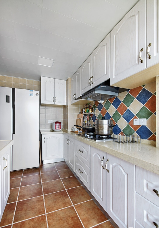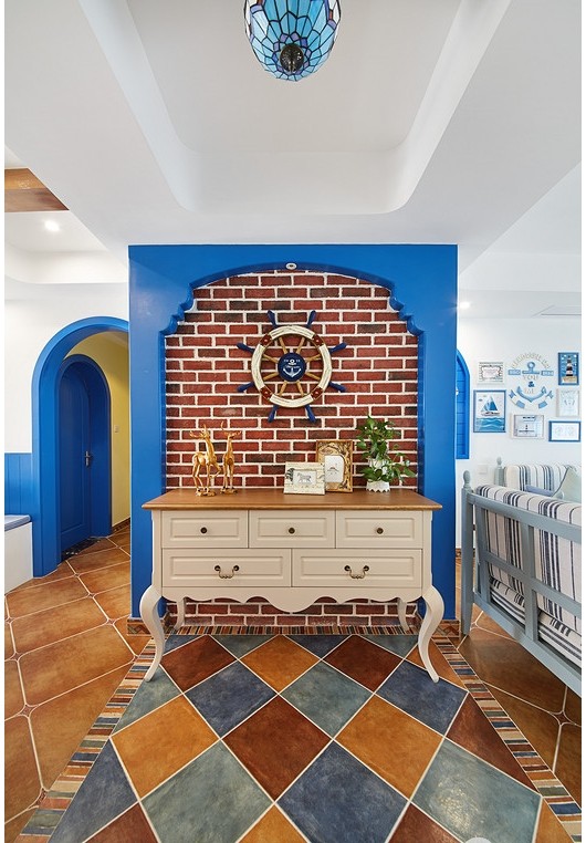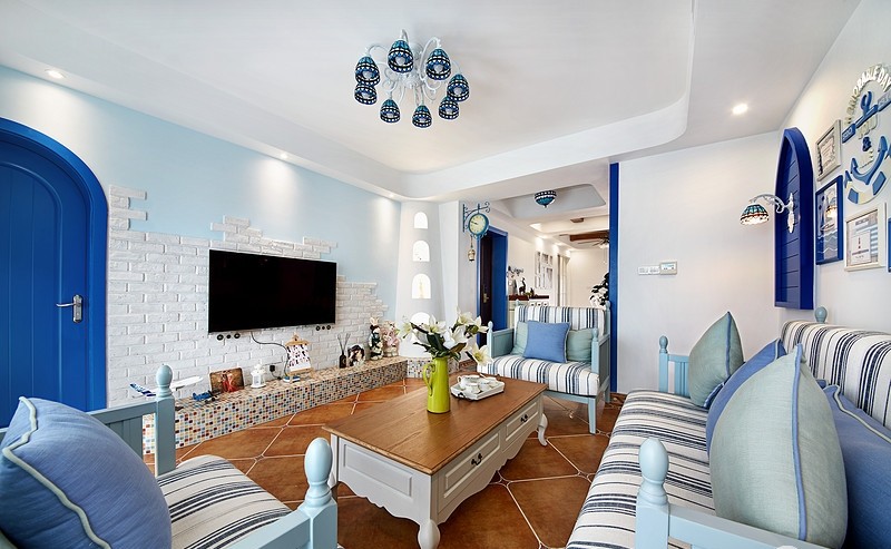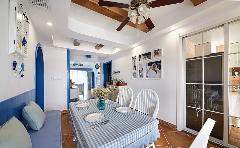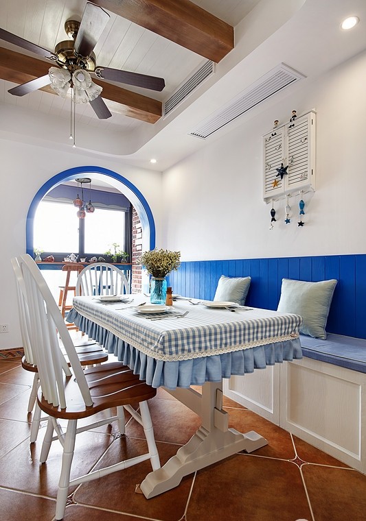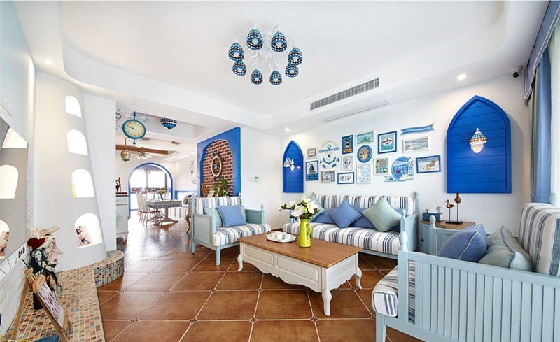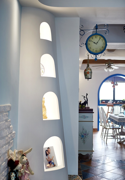 業(yè)主很喜歡地中海風(fēng)格帶來(lái)的那種“海洋”的感覺(jué),但是又不希望藍(lán)色占據(jù)太多家里面積,所以設(shè)計(jì)師為他打造了這樣一套以白色為主,藍(lán)色做點(diǎn)綴的地中海風(fēng)格??蛷d和廚房是很清新的藍(lán)與白,給人一種海風(fēng)拂面的感覺(jué)。其中一件臥室用的是淺綠色作為主色調(diào),但也不會(huì)顯得突兀,同樣適宜地中海風(fēng)格。