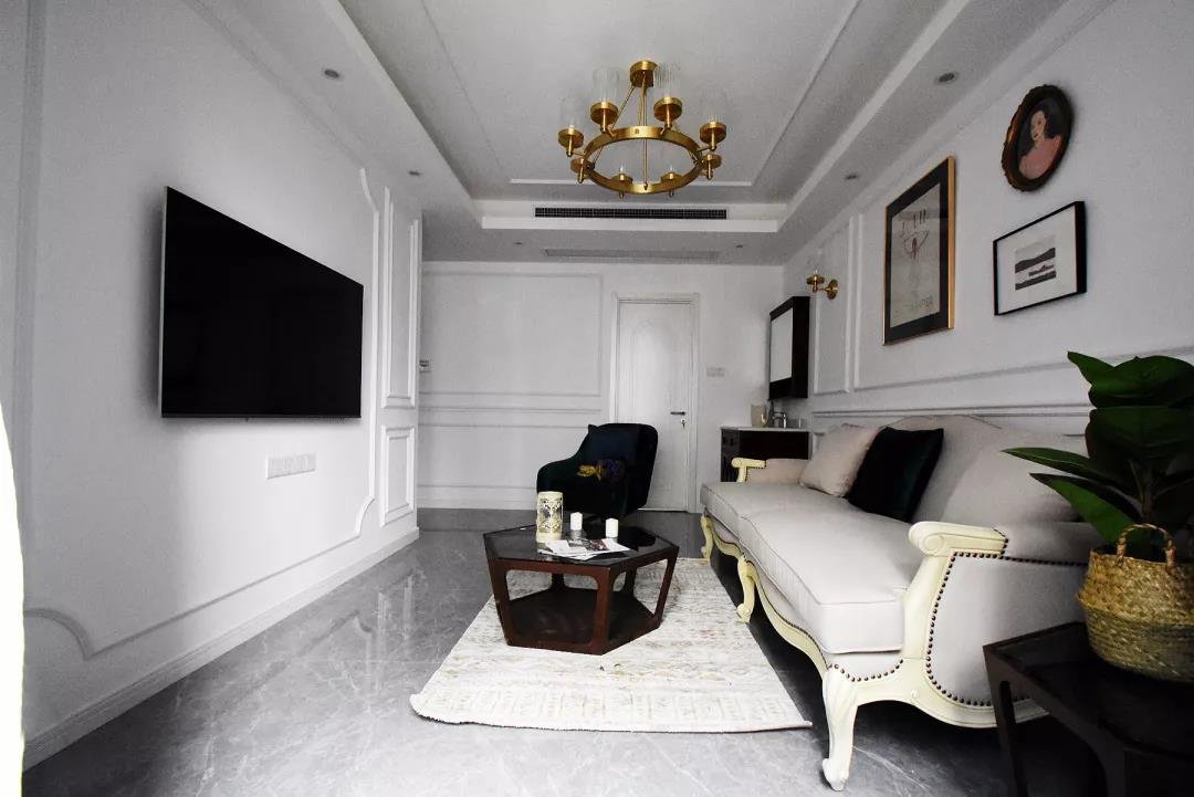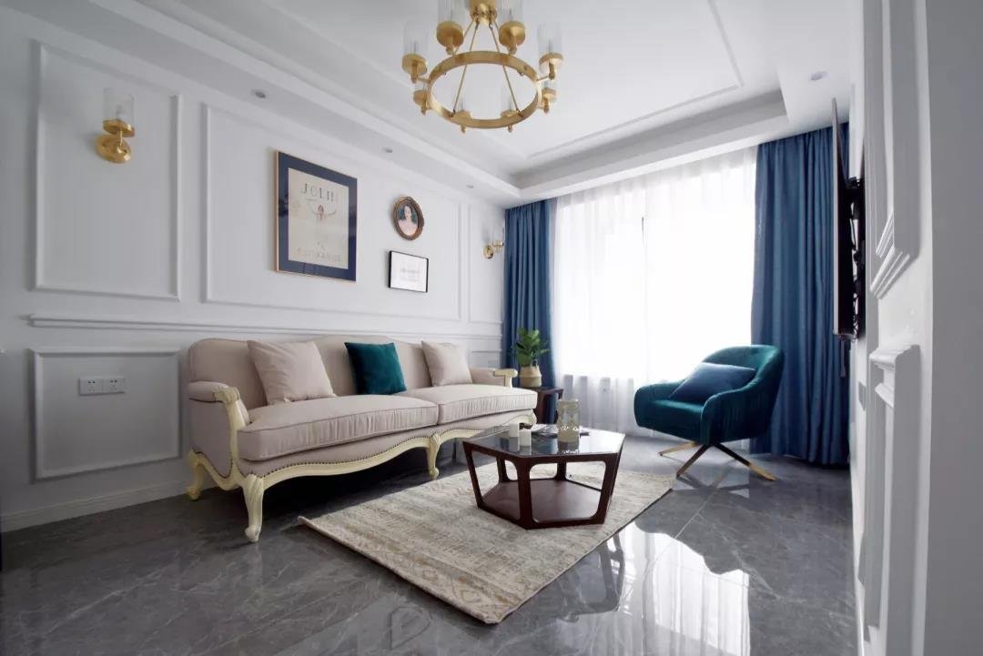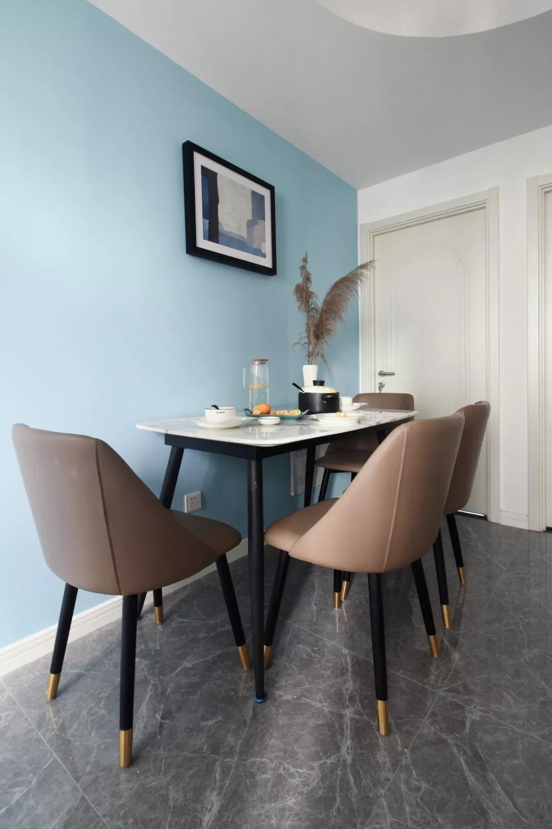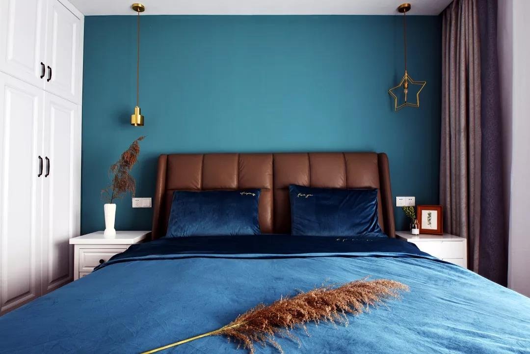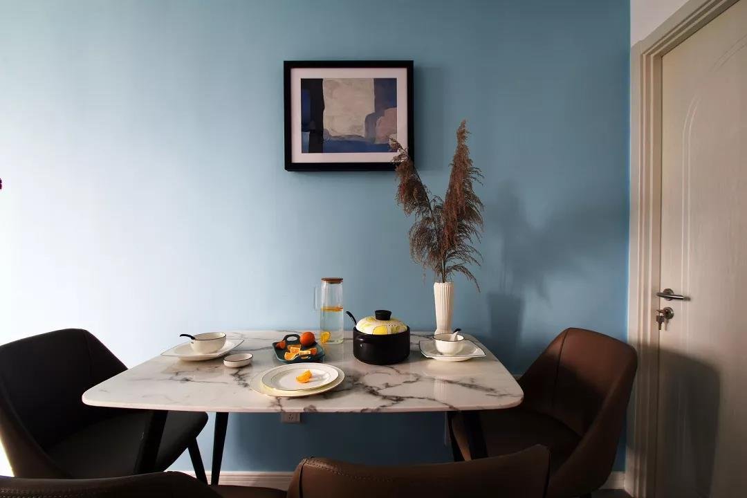 這套簡約風(fēng)的案例在臥室的配色上,選用了比較少見的深藍(lán)色,配以白色的家具,倒彰顯出了別樣的風(fēng)味。深藍(lán)色的裝飾透露著成熟與穩(wěn)重,同時(shí)也不會(huì)太過沉悶??蛷d還是以淺色系為主,光線從陽臺(tái)透進(jìn)來的時(shí)候,整個(gè)客廳都很寬敞明亮。