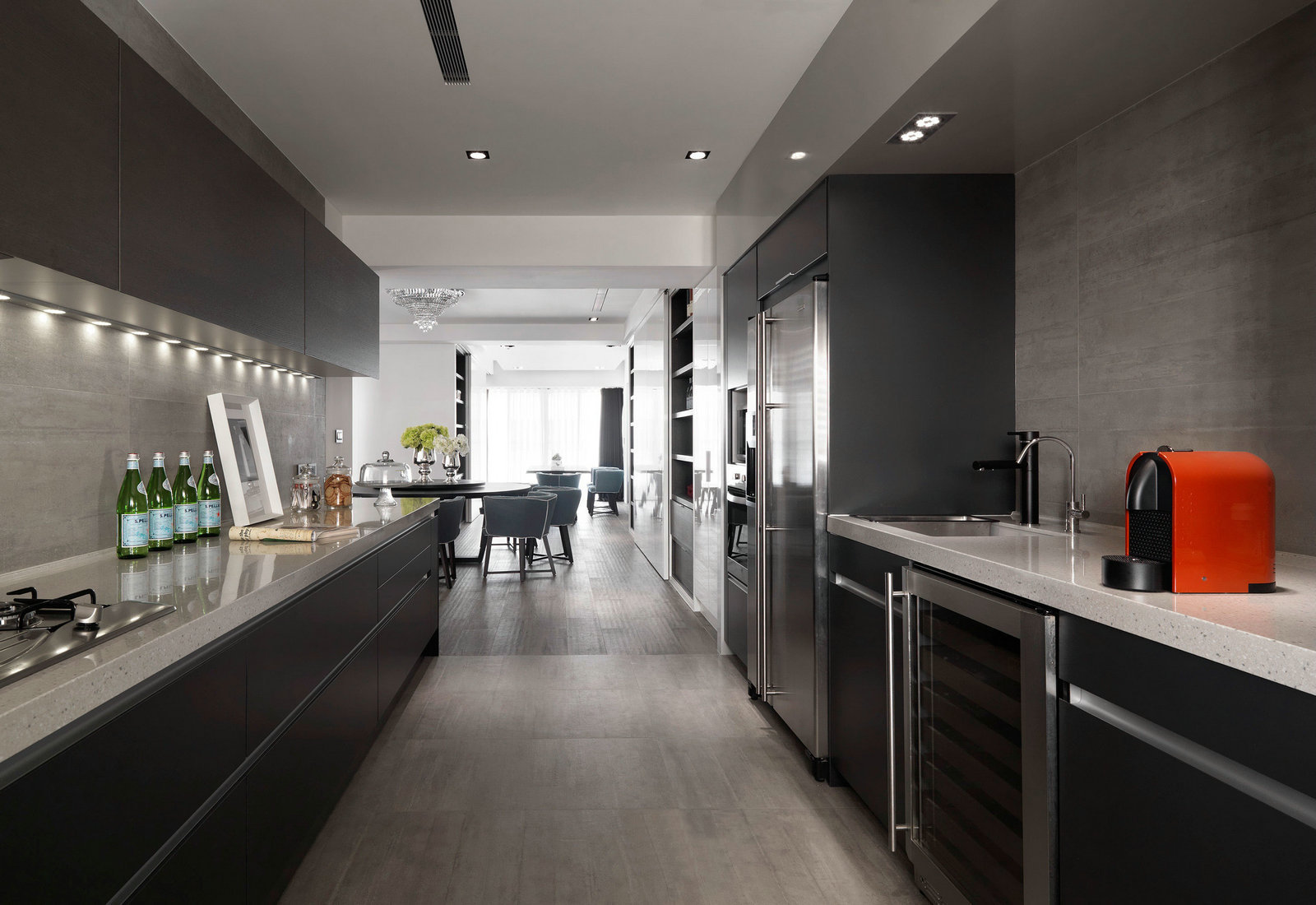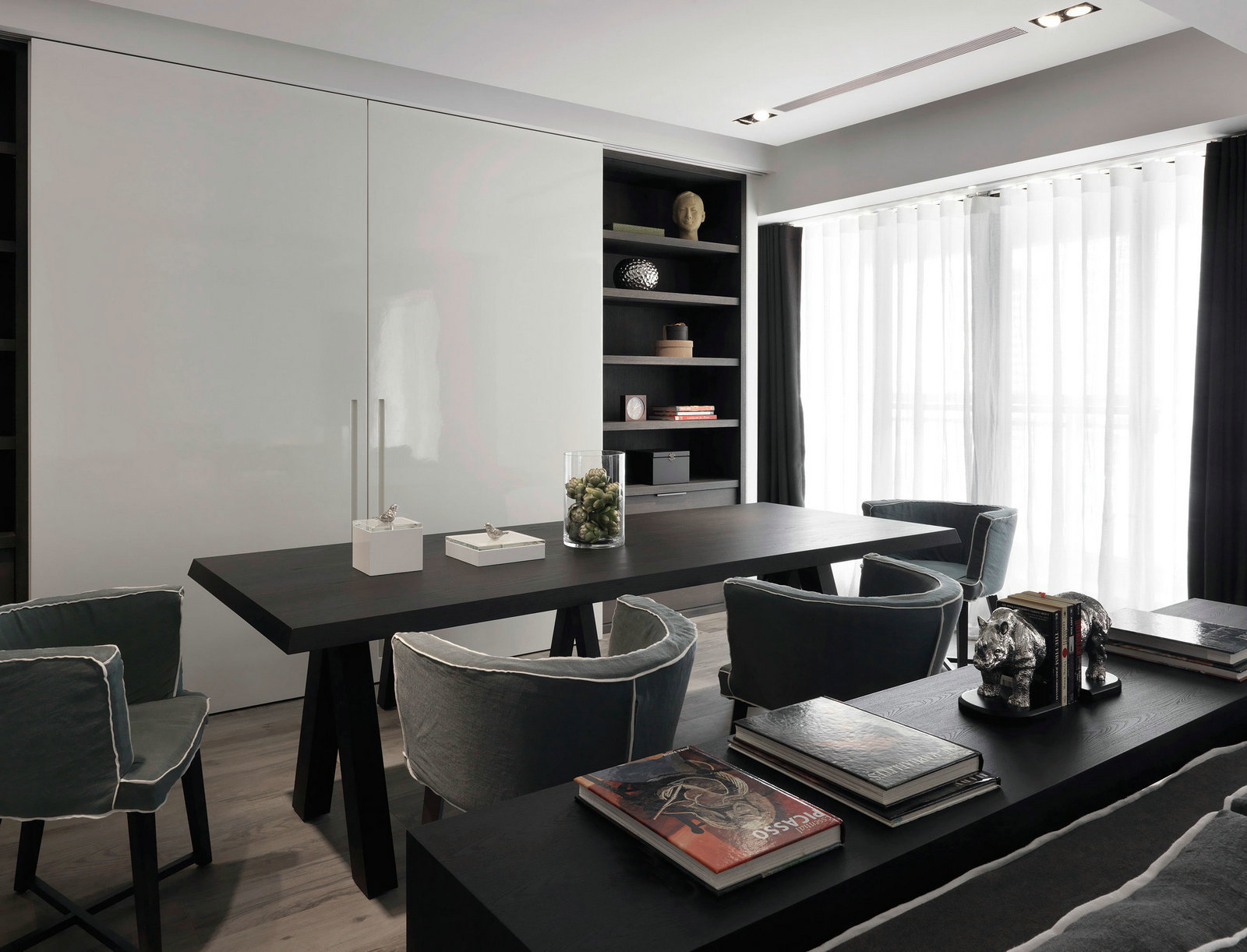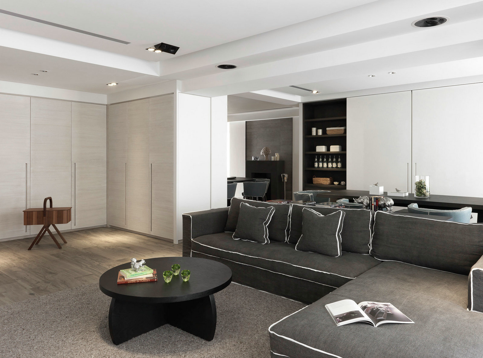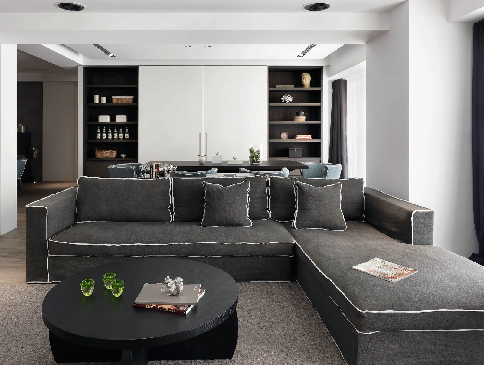 深灰色和白色是這套三居室的主色調(diào),沉穩(wěn)大氣,簡(jiǎn)單舒適,比起設(shè)計(jì)的觀賞性,設(shè)計(jì)師更專(zhuān)注于設(shè)計(jì)的實(shí)用性。沙發(fā)柔軟、寬大、舒適,儲(chǔ)物柜編排合理,白色的柜體幾乎要跟墻面融為一體,一點(diǎn)也不顯得擁擠和突兀。
