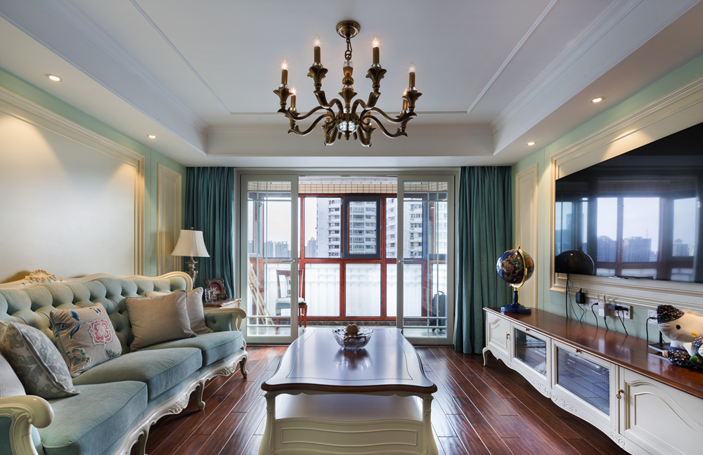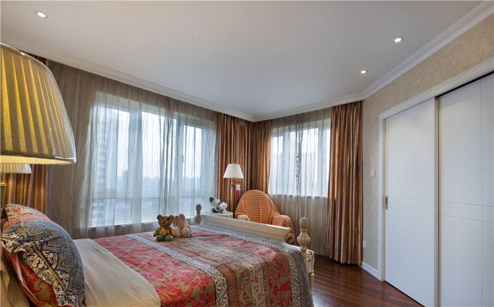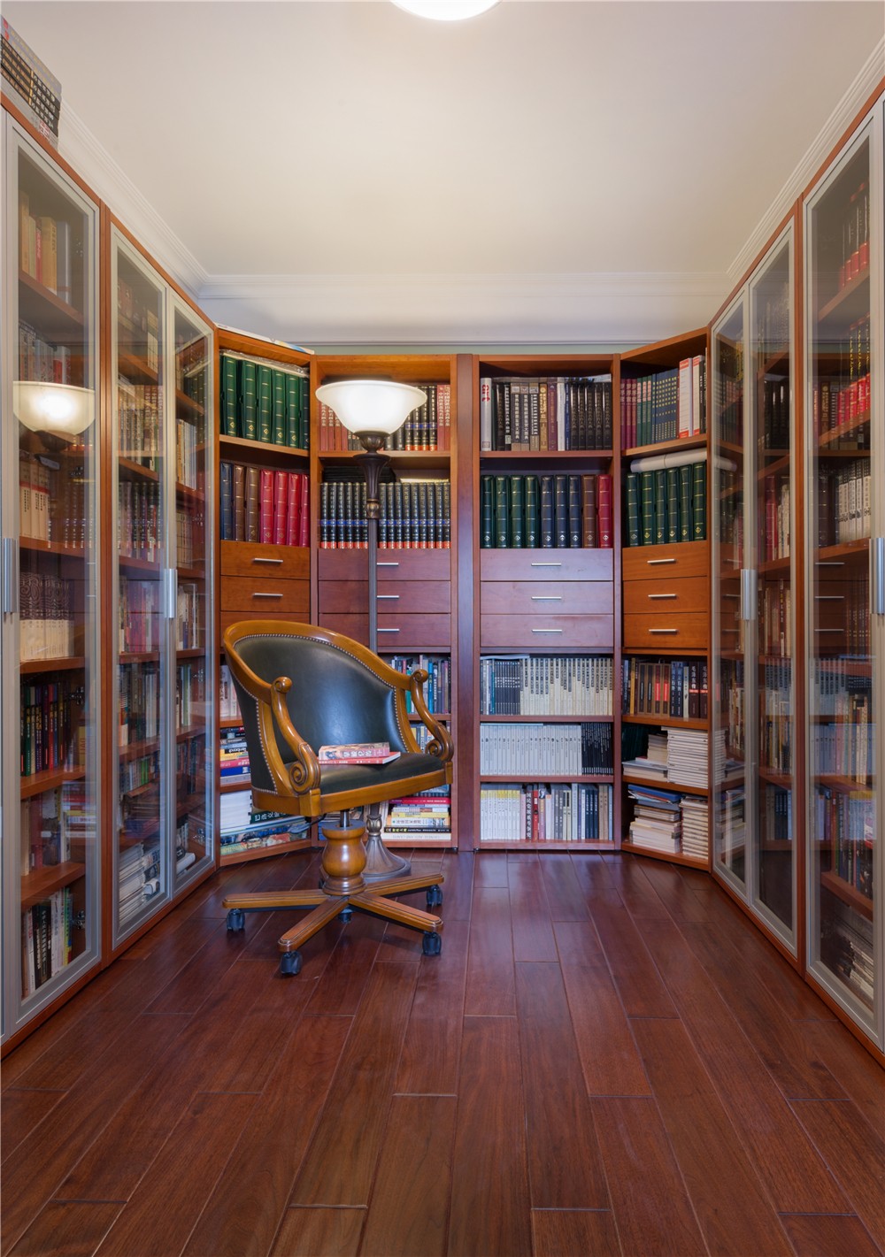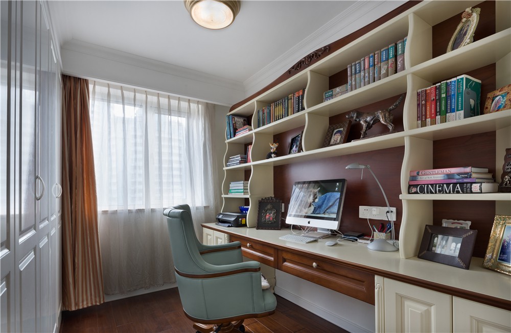 客廳的沙發(fā)選取的是很清新的藍色,白色包邊,是家里的女主人很喜歡的款式。因為業(yè)主有藏書看書的喜好,所以書房幾乎三面都是書柜,玻璃柜門的設(shè)計,既能防塵,又能迅速找到自己需要的書籍。臥室采光很好,所以要適當增加遮光簾,方便午睡。