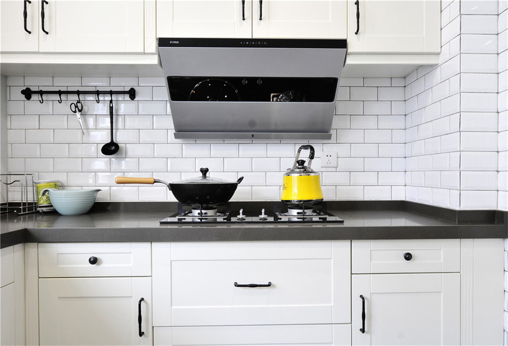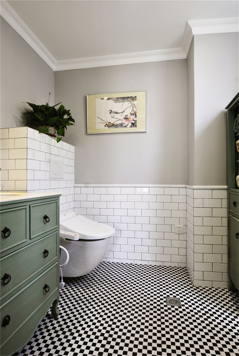 這套新古典風(fēng)格形式上更為簡約,但是可以從細(xì)節(jié)上感受它的雅韻。白色的主色調(diào)能夠提亮空間,木質(zhì)的家具可提升格調(diào)。廚房和衛(wèi)生間都鋪設(shè)黑線白格的瓷磚,風(fēng)格上有一致性,也更為時(shí)尚、美觀。