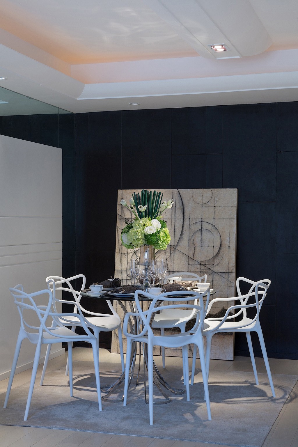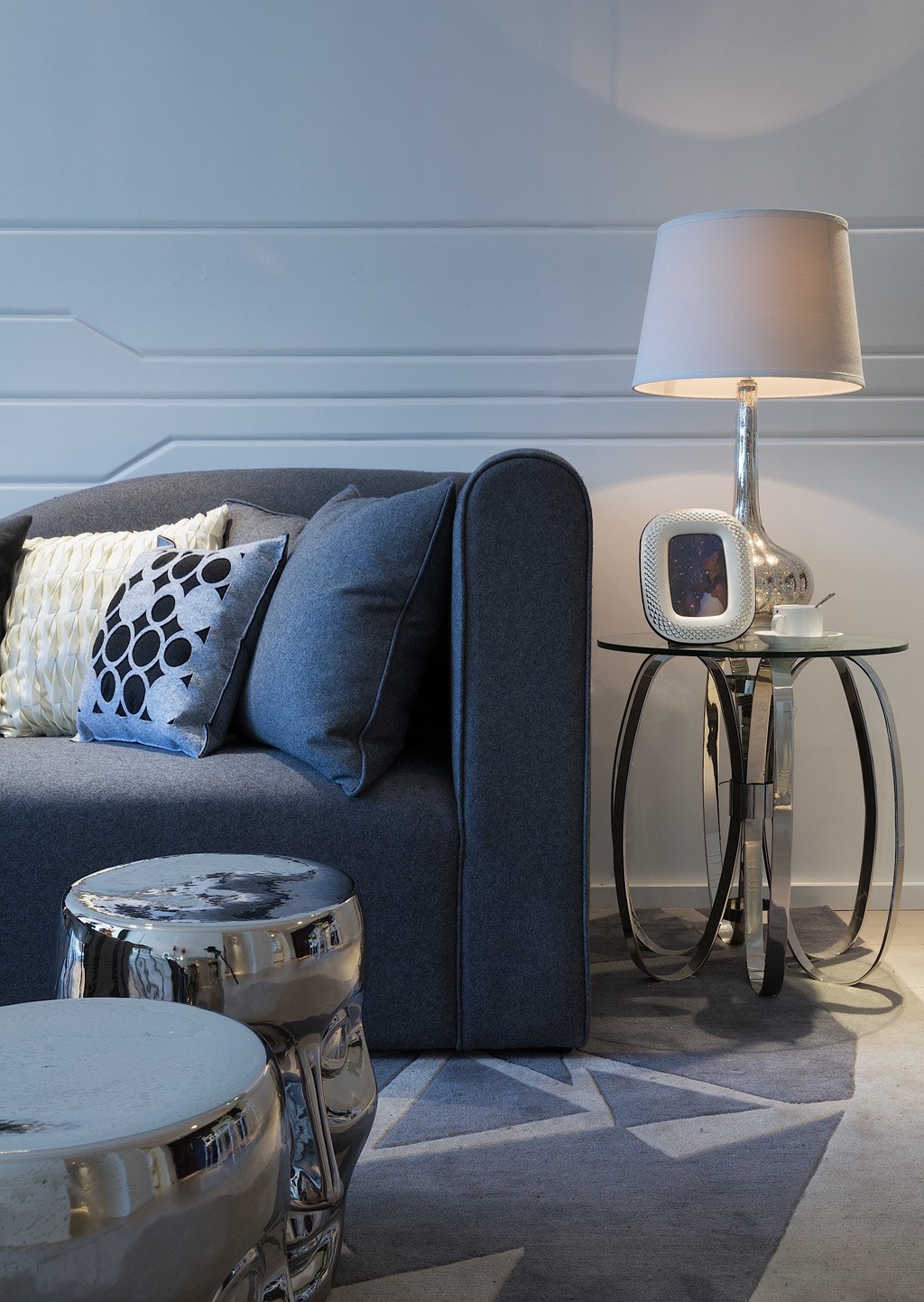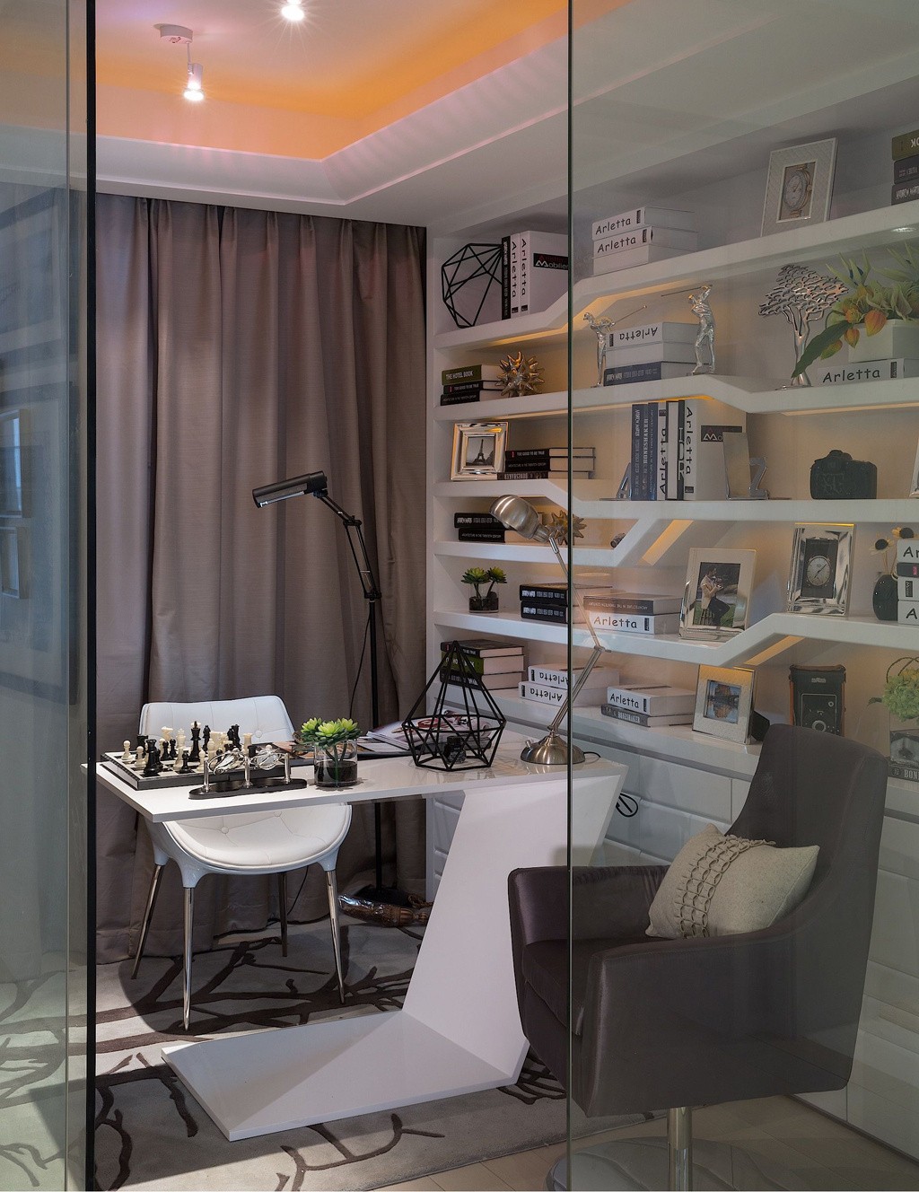這套后現(xiàn)代風(fēng)格充滿設(shè)計(jì)感,細(xì)節(jié)上有一些叛逆,就像客廳里的小矮凳,并不是所有人都能接受的款式。臥室的風(fēng)格相對(duì)比較簡(jiǎn)潔,以白色為主色調(diào),用鏡子和玻璃增加層次感,效果十分不一樣。