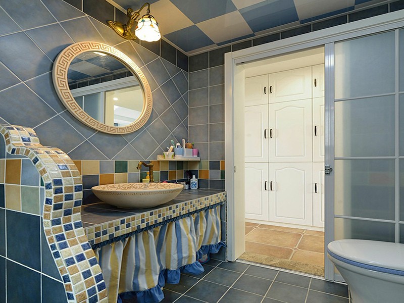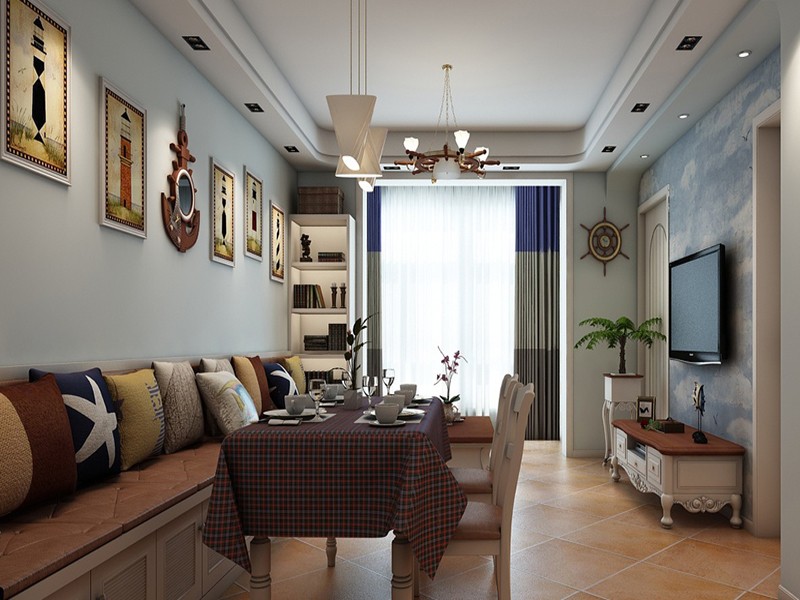 業(yè)主喜歡地中海風(fēng)格的異域風(fēng)情,在看了幾套裝修案例之后,表示自己不是很喜歡地中海風(fēng)格常用的海藍(lán)色,所以設(shè)計(jì)師在藍(lán)色里加了一點(diǎn)灰調(diào)。這套二居室的主色調(diào),與其說(shuō)是藍(lán)色,不如說(shuō)是更貼近于灰色,有一種低調(diào)、成熟、穩(wěn)重的美感。
